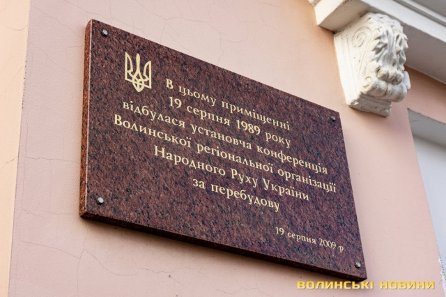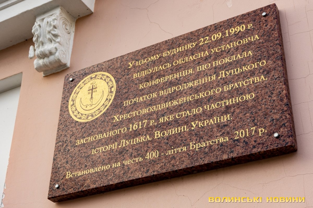 Меморіальні дошки на честь установчої конференції Луцького Хрестовоздвиженського братства та установчої конференції Волинської регіональної організації НРУ.