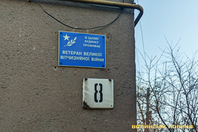 Загалом дошок радянського періоду у Луцьку не залишилося (принаймні, нам про такі не відомо). Проте на одній забутій Богом вулиці вдалося виявити справжній раритет. «У цьому будинку проживає ветеран Великої Вітчизняної війни», – гласить напис. Колись подібні дошки висіли на багатьох будинках. Поступово вони зникли. Вочевидь, саме цю зняли мисливці за кольоровими металами десь на початку 1990-х. Металеву замінили дешевою пластиковою. Проте напис вже зробили українською мовою. Подібних бачити не доводилося.Треба сказати, що після початку війни з Росією найбільше меморіальних дошок встановлено в пам’ять про загиблих бійців, які жили або навчалися у Луцьку. Проте ці дошки заслуговують окремої розповіді.
