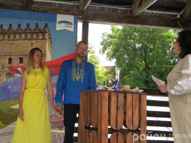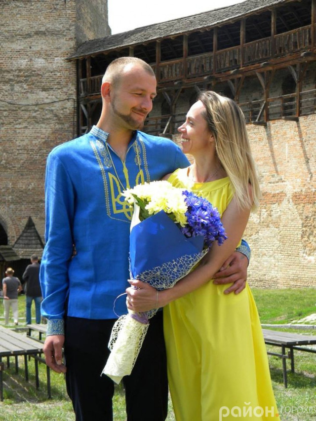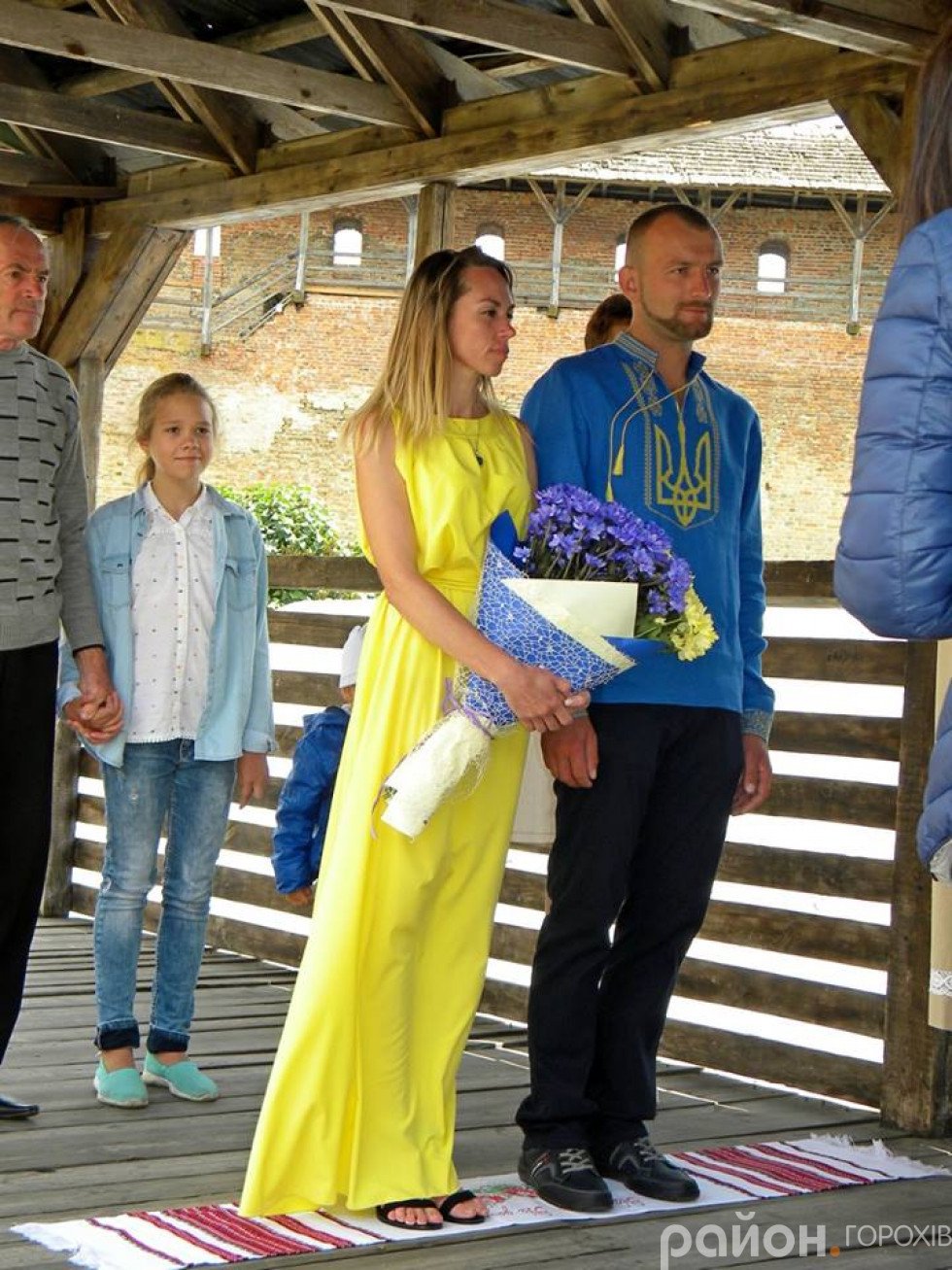 Луцький замок зустрів ранок 22 червня первинною красою і середньовічним спокоєм. Не було ні пишного білого плаття, ні подруг молодої. Нічого, властивого звичним весіллям. Із присутніх: мама Сергія, тато Наталки, луцька волонтерка Наталя Ариванюк, волонтер із Горохова Віталій Гладун, племінники і кілька побратимів Сергія.