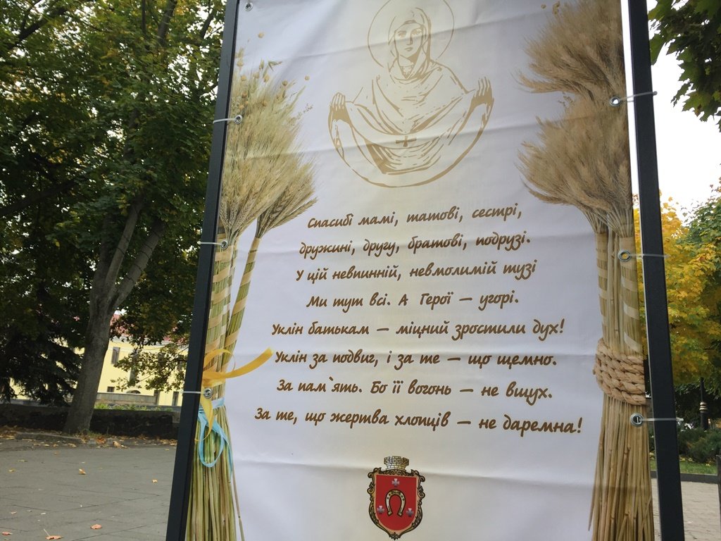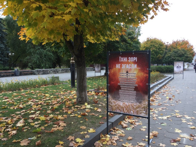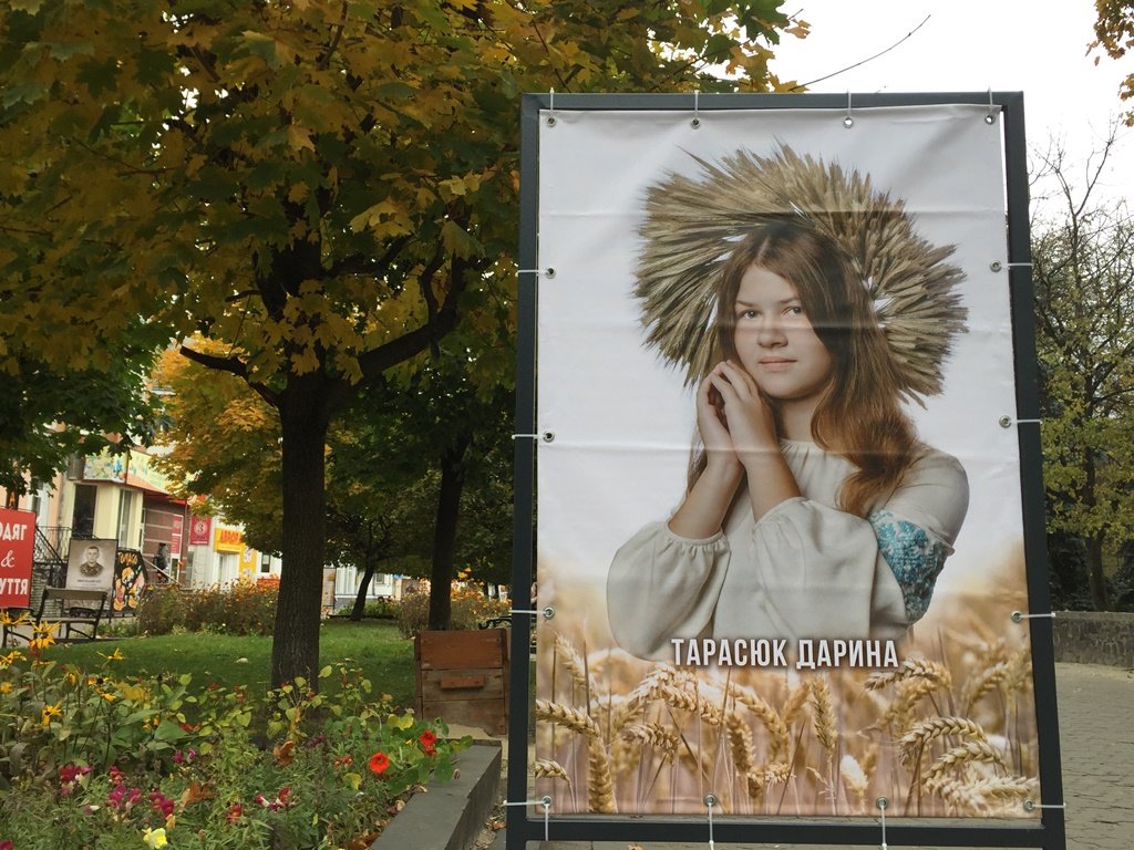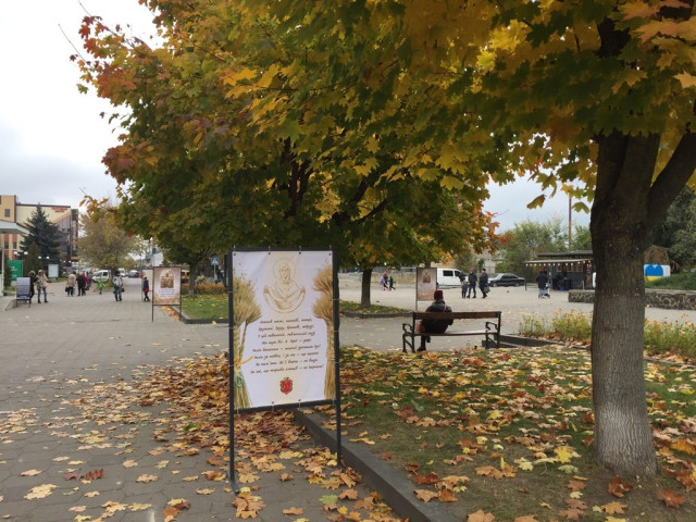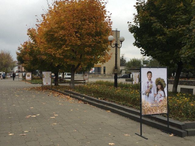 А ще представлені стенди з поетичними рядками, присвяченими батькам, святу Покрови, і з фотографіями символів фотопроекту.