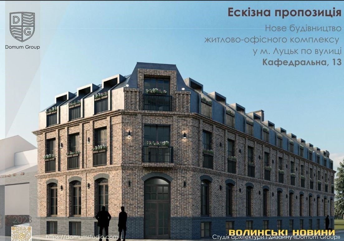 Нагадаємо, ТОВ «МБК» на умовах оренди надали дві ділянки на вулиці Кафедральній, 13 та Драгоманова, 15 у Луцьку для будівництва та обслуговування житлово-офісного комплексу. Представник ТОВ «МБК» повідомив, що на ділянках планують забудову з дотриманням концепції Старого міста. Він представив візуалізацію та зауважив, що будівлі не матимуть більш як три поверхи.