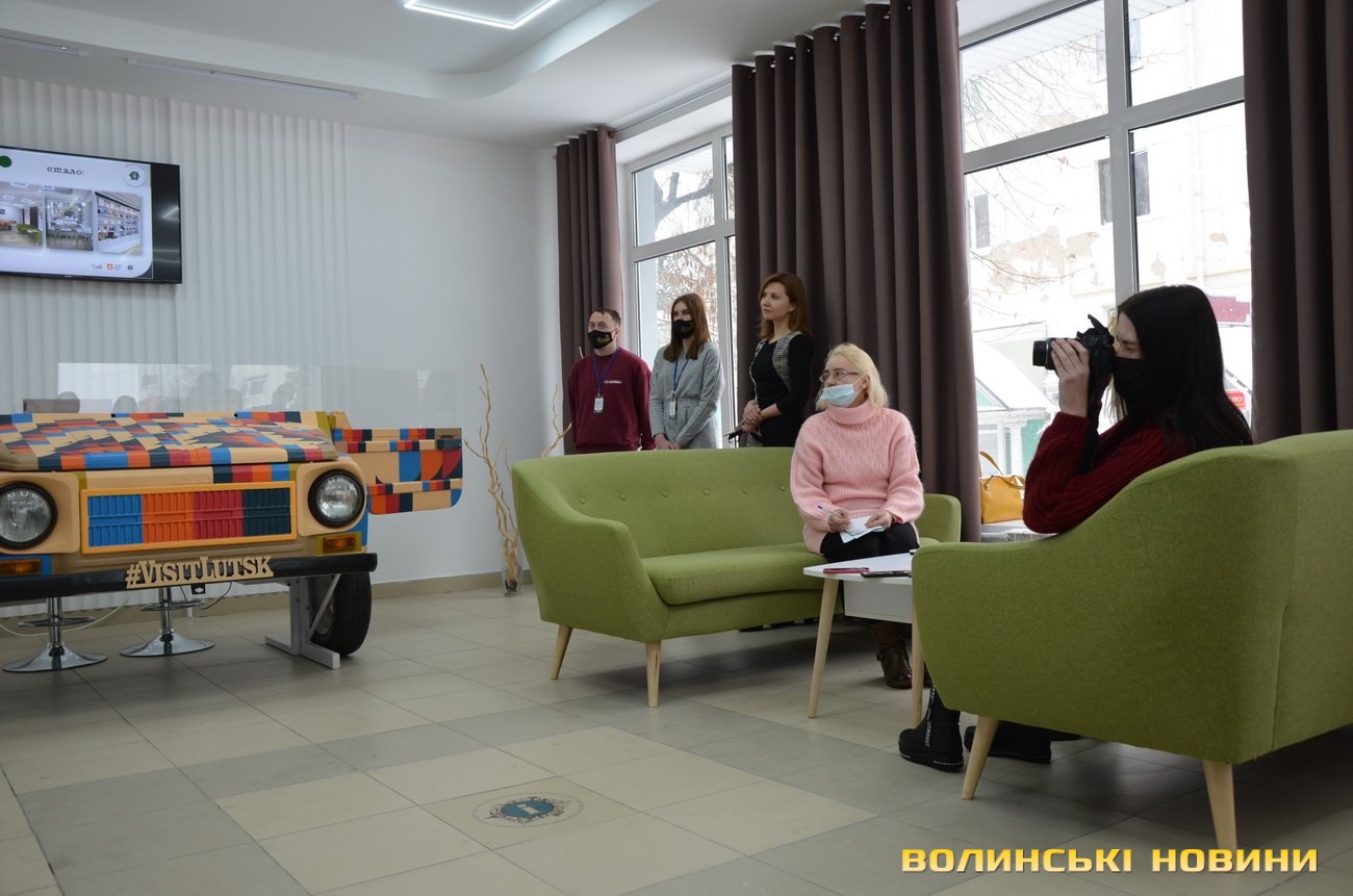 «Для того, щоб усім нашим відвідувачам було комфортно, а туристи змогли відразу відчути дух міста, завітавши до Центру туристичної інформації та послуг, ми вирішили його оновити», – зазначила вона.У приміщенні повністю оновили головний зал: замінили стелю, зробили нове освітлення, збільшили кількість місць для відвідувачів, розмістили зручні канапи та стільці, перемістили стелажі для сувенірної продукції, розмістили рецепцію навпроти входу, її зробили з використанням частини автомобіля «Волинянка».