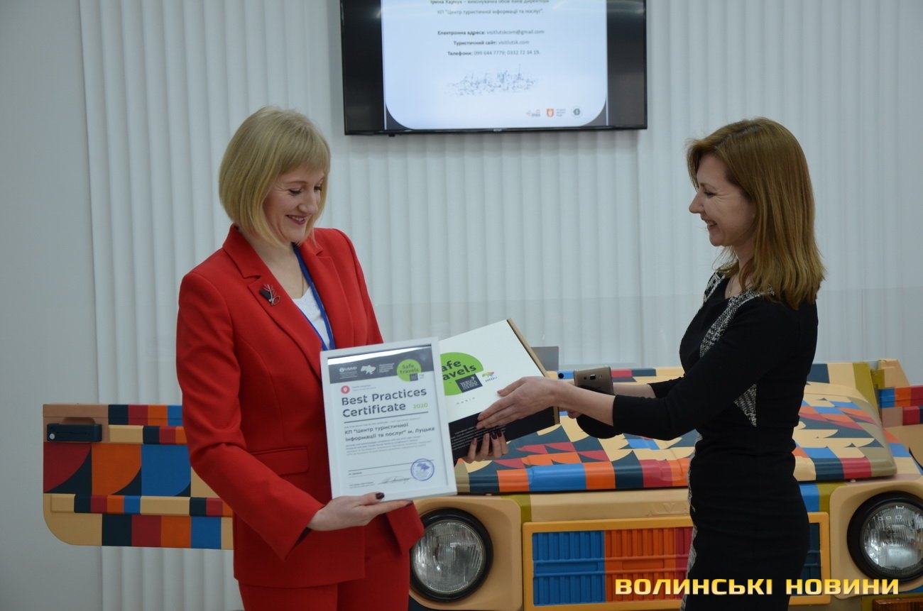 Також Центр туристичної інформації та послуг у Луцьку відзначено сертифікатом Всесвітньої ради подорожей та туризму Safe Travels.Читати ще: Нові маршрути й пропозиції: як заманюватимуть туристів до Луцька