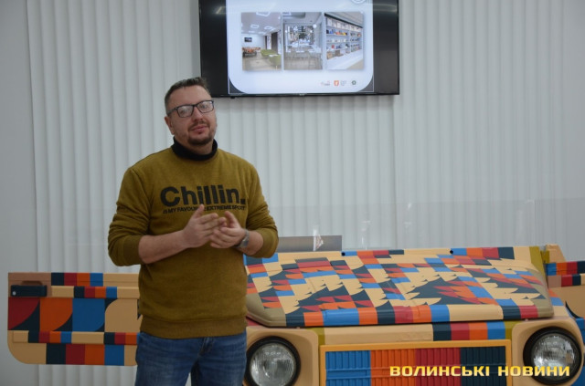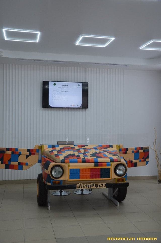 «Це наш місцевий всюдихід, який виготовляли на Луцькому автомобільному заводі в 70-90-х роках. Це одна з наших туристичних фішок. Ми навіть організовуємо туристичні прогулянки містом на «Волинянці», – сказала Ірина Харчук і додала, що рецепцію можна використовувати теж як фотозону.