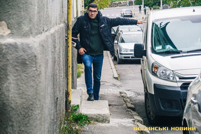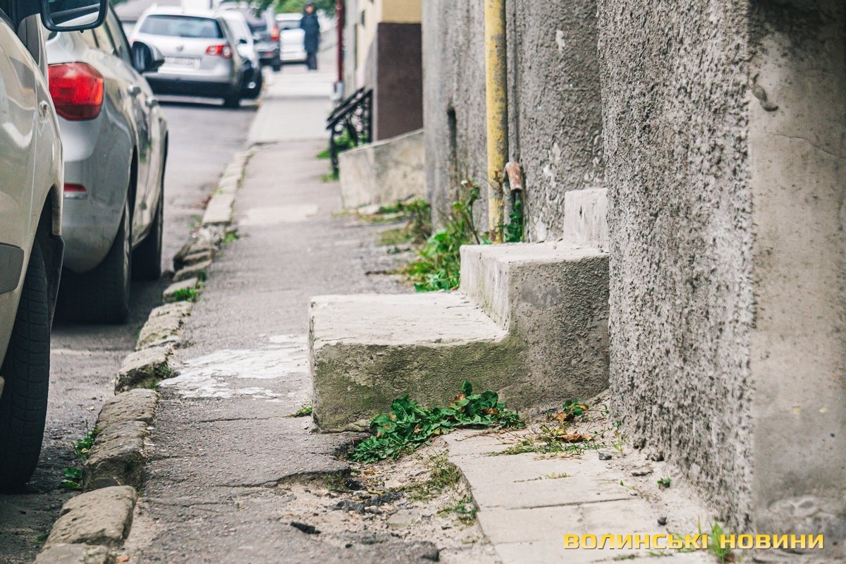 Найвужчий тротуар в Луцьку на вулиці Теремнівський проти ''Старого палкана''