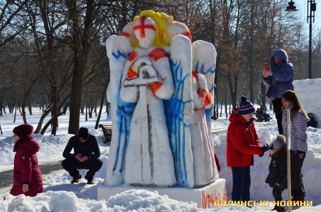 Замки, вартовий і ангел Луцька: в Центральному парку поселилися снігові скульптури. Фото