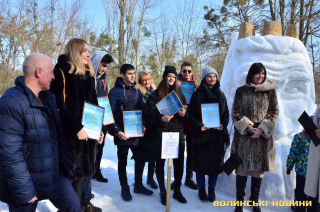 Колективи Волинського фахового коледжу культури і мистецтва імені Ігоря Стравінського представили скульптури під назвами «Зимові коні» та «Замкові розваги», команда Луцького ВПУ будівництва та архітектури виліпила «Ангела міста», групи факультету культури і мистецтв Волинського національного університету імені Лесі Українки зобразили «Кохання через віки» та «Лесину постать», а студенти та викладачі Луцького національного технічного університету презентували публіці «Вартового Лучеська» та «Зимовий настрій». Натомість представники ГО «Чарівний пензлик» змайстрували арт-об’єкт «Лесин сон», вихованці Луцької художньої школи зліпили «Сову», а молоді художники Волинської організації Національної спілку художників України створили роботу «Мороз».Представники групи факультету культури і мистецтв ВНУ імені Лесі Українки, які працювали над скульптурою «Кохання через віки», розповіли, що, створюючи об’єкт, отримали купу позитивних емоцій.