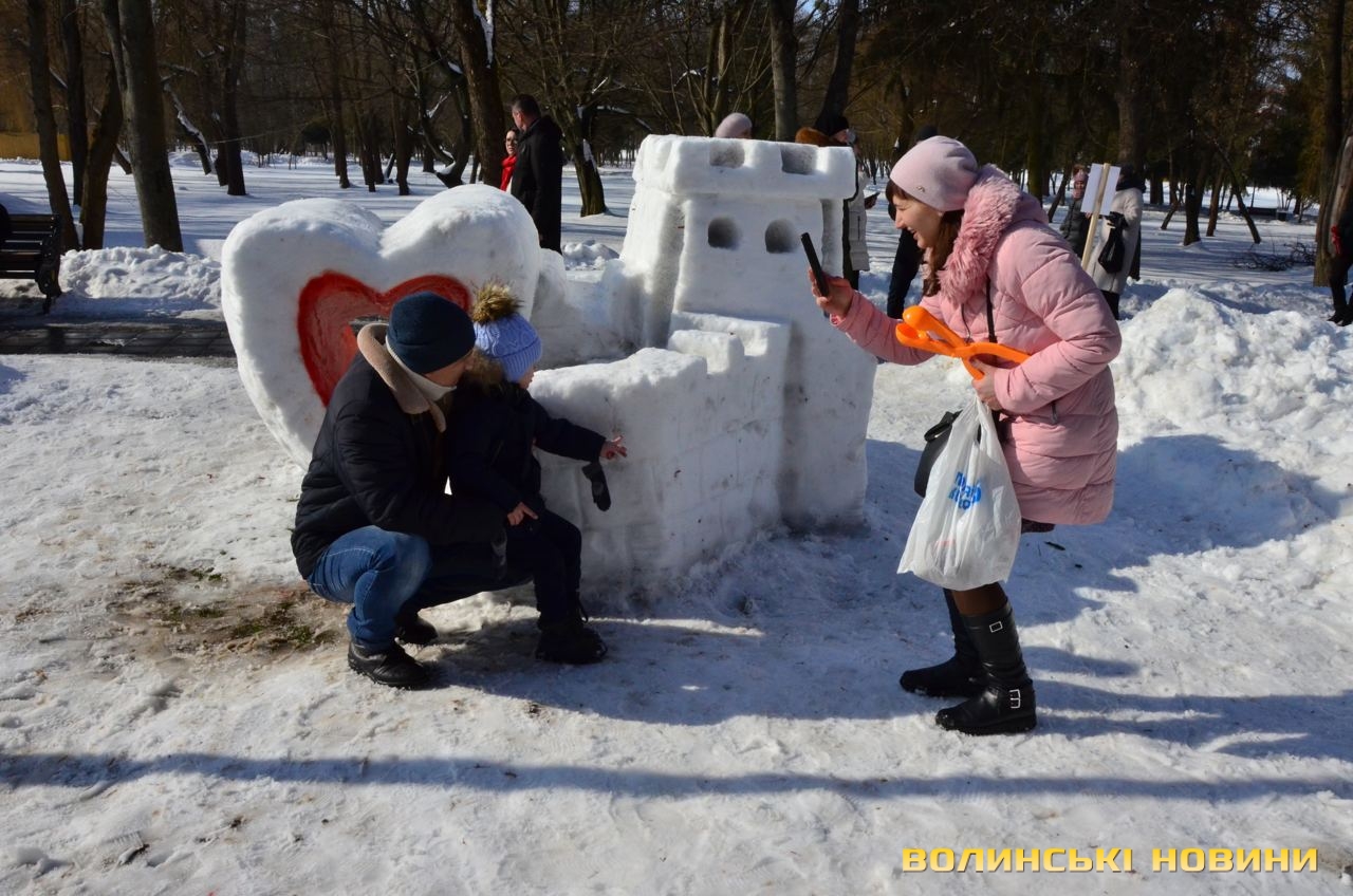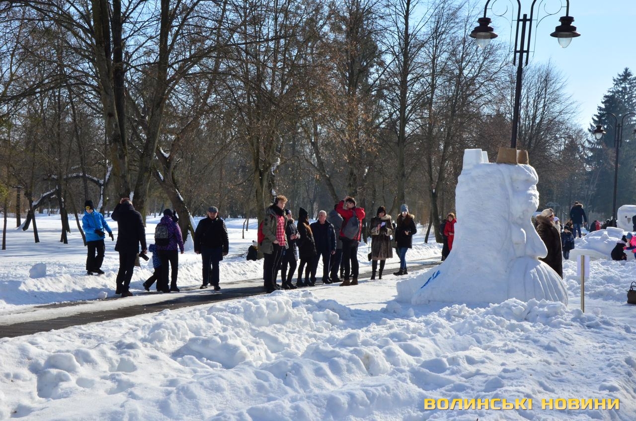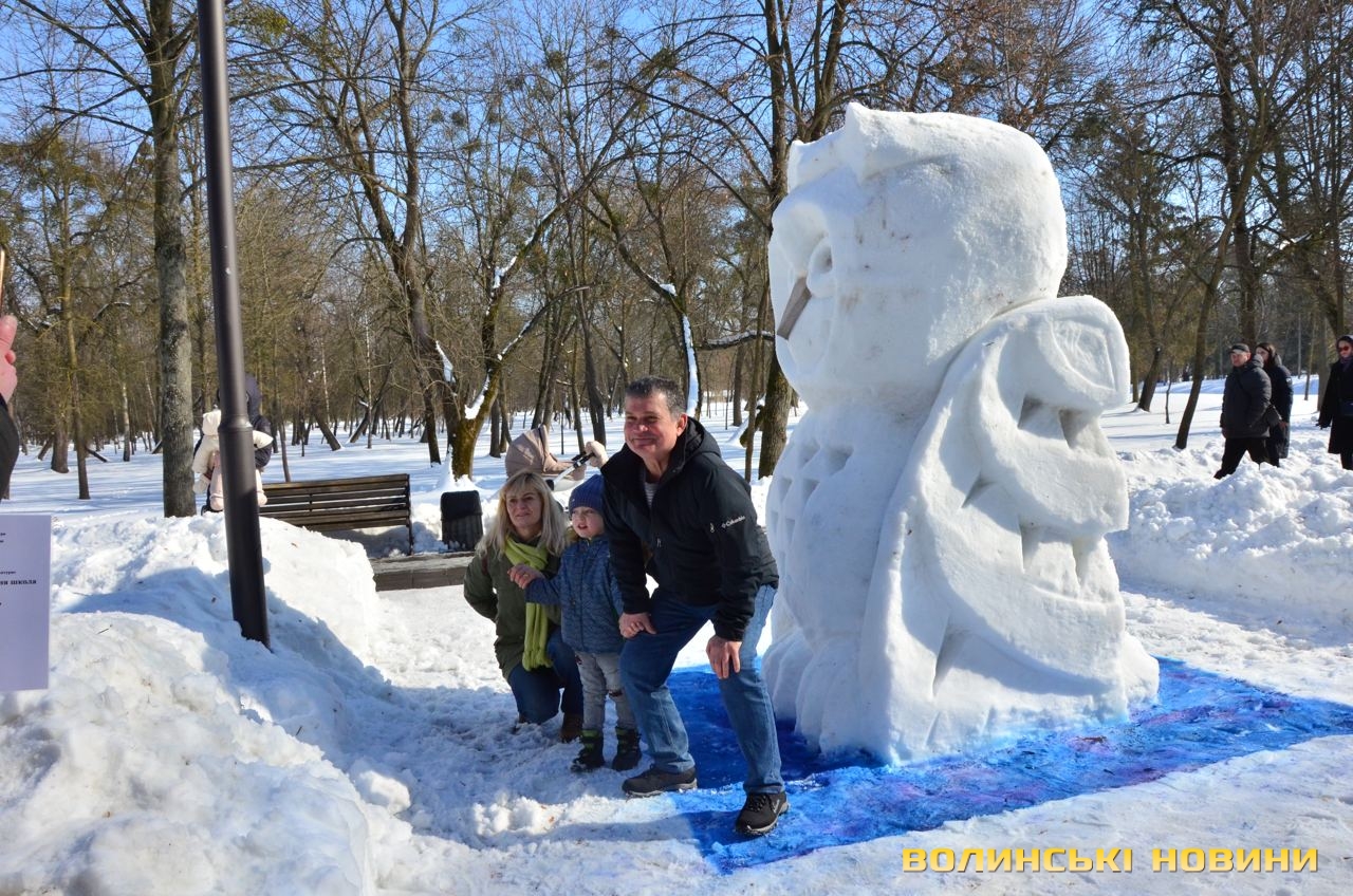 Скульптури, майстерно виліплені зі снігу, розташувалися вздовж головної алеї Центрального парку культури та відпочинку імені Лесі Українки. Ще минулих вихідних тут підготували снігові куби та необхідний реманент для творчих груп. Сам пленер «Снігова скульптура» стартував у суботу, 20 лютого, а вже в неділю всі охочі прийшли до парку, аби оцінити старання митців.