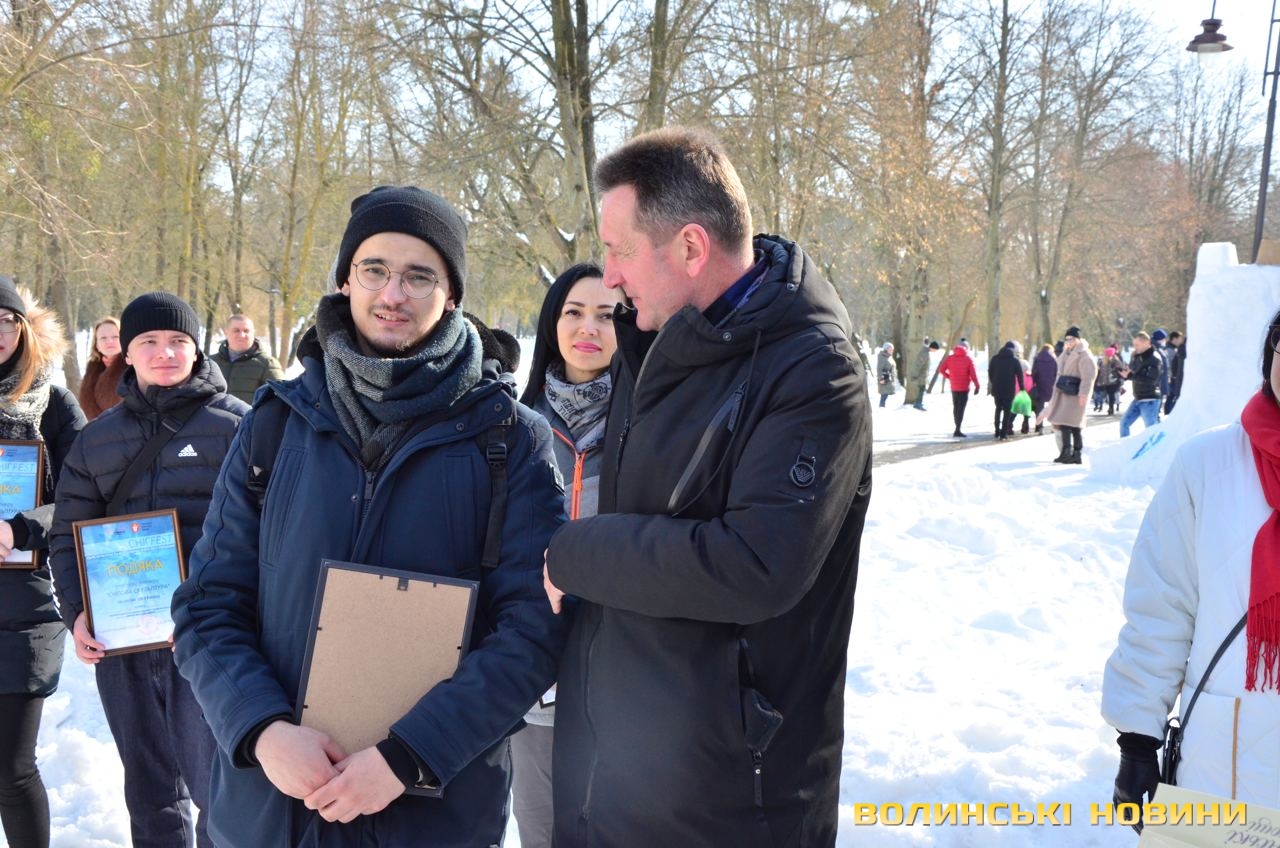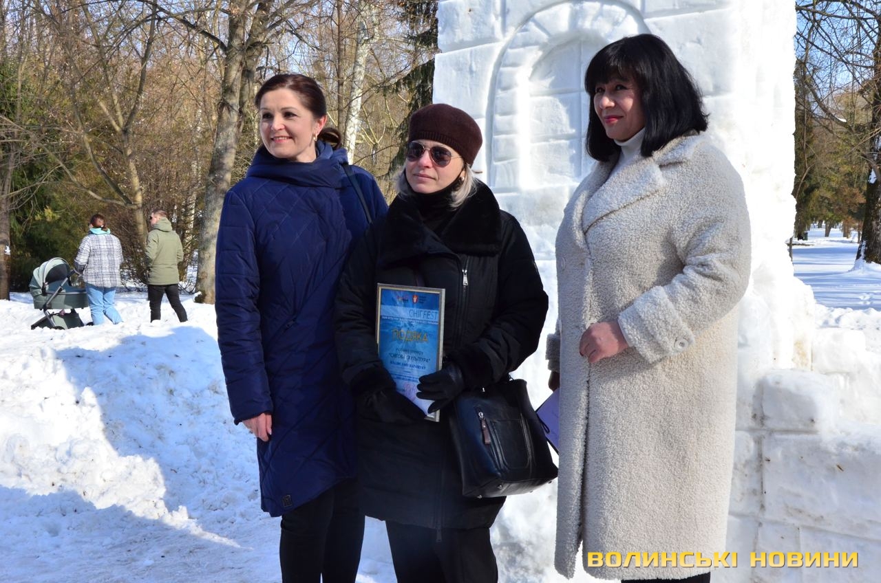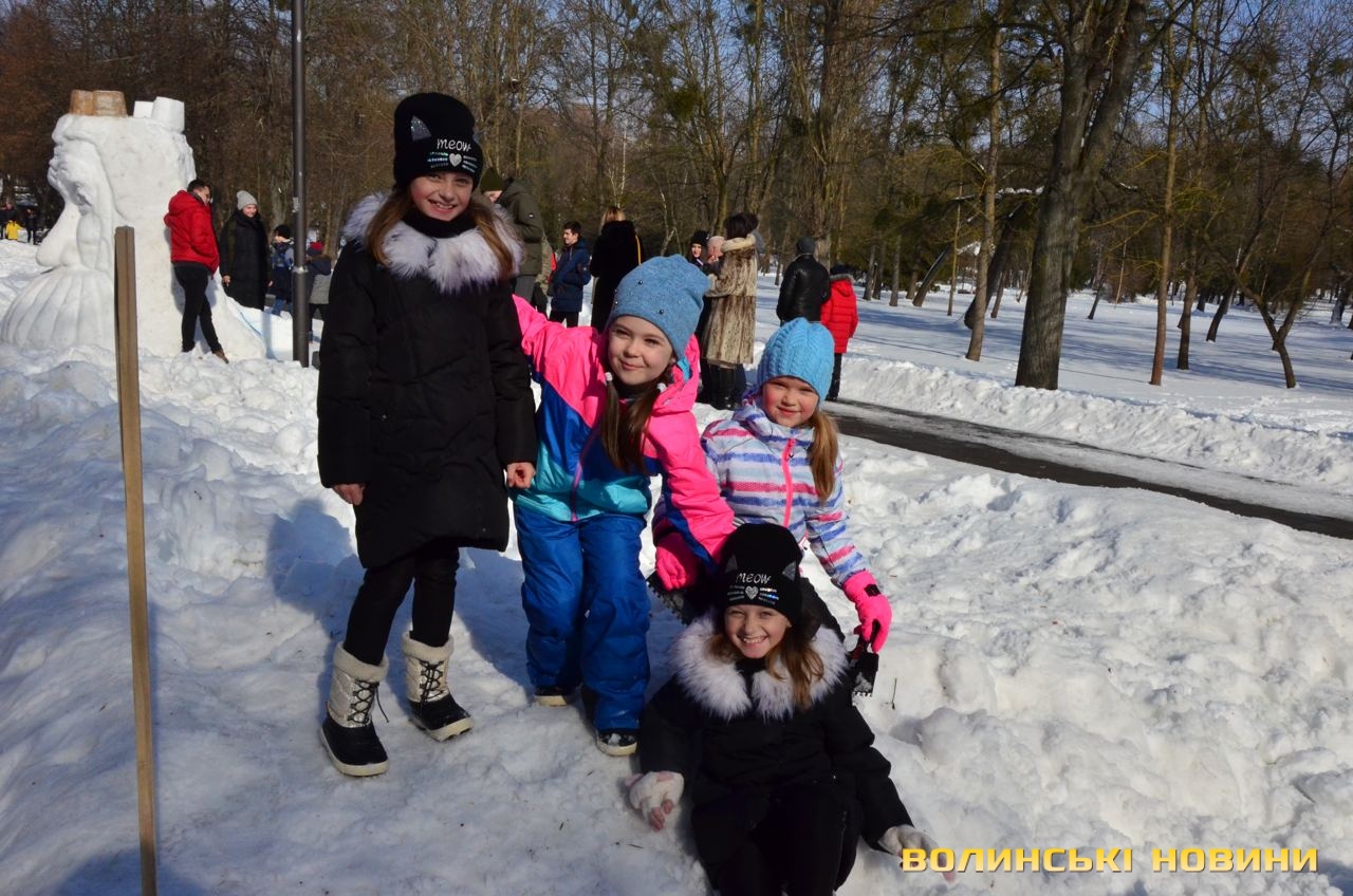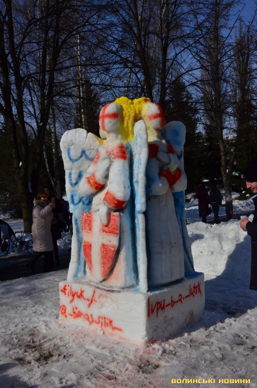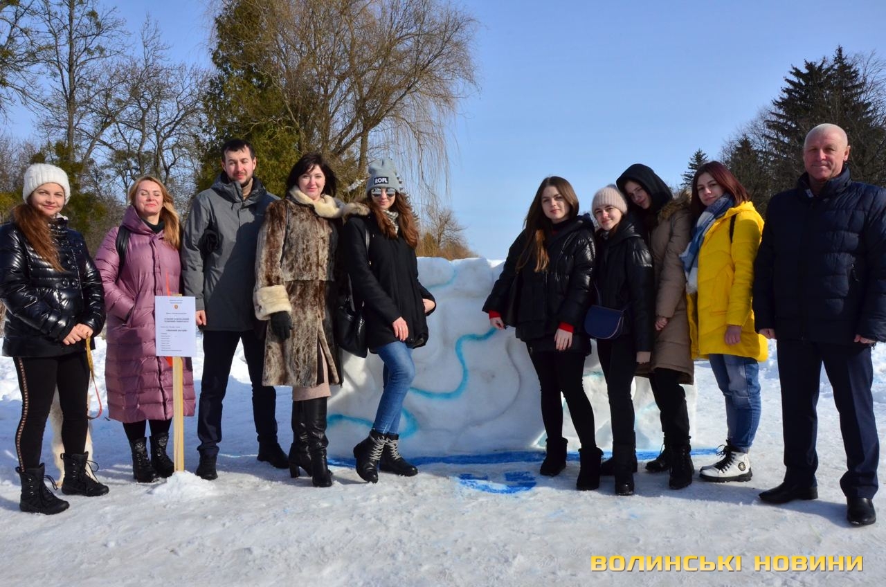 Колективи Волинського фахового коледжу культури і мистецтва імені Ігоря Стравінського представили скульптури під назвами «Зимові коні» та «Замкові розваги», команда Луцького ВПУ будівництва та архітектури виліпила «Ангела міста», групи факультету культури і мистецтв Волинського національного університету імені Лесі Українки зобразили «Кохання через віки» та «Лесину постать», а студенти та викладачі Луцького національного технічного університету презентували публіці «Вартового Лучеська» та «Зимовий настрій». Натомість представники ГО «Чарівний пензлик» змайстрували арт-об’єкт «Лесин сон», вихованці Луцької художньої школи зліпили «Сову», а молоді художники Волинської організації Національної спілку художників України створили роботу «Мороз».Представники групи факультету культури і мистецтв ВНУ імені Лесі Українки, які працювали над скульптурою «Кохання через віки», розповіли, що, створюючи об’єкт, отримали купу позитивних емоцій.