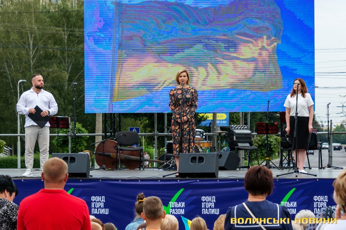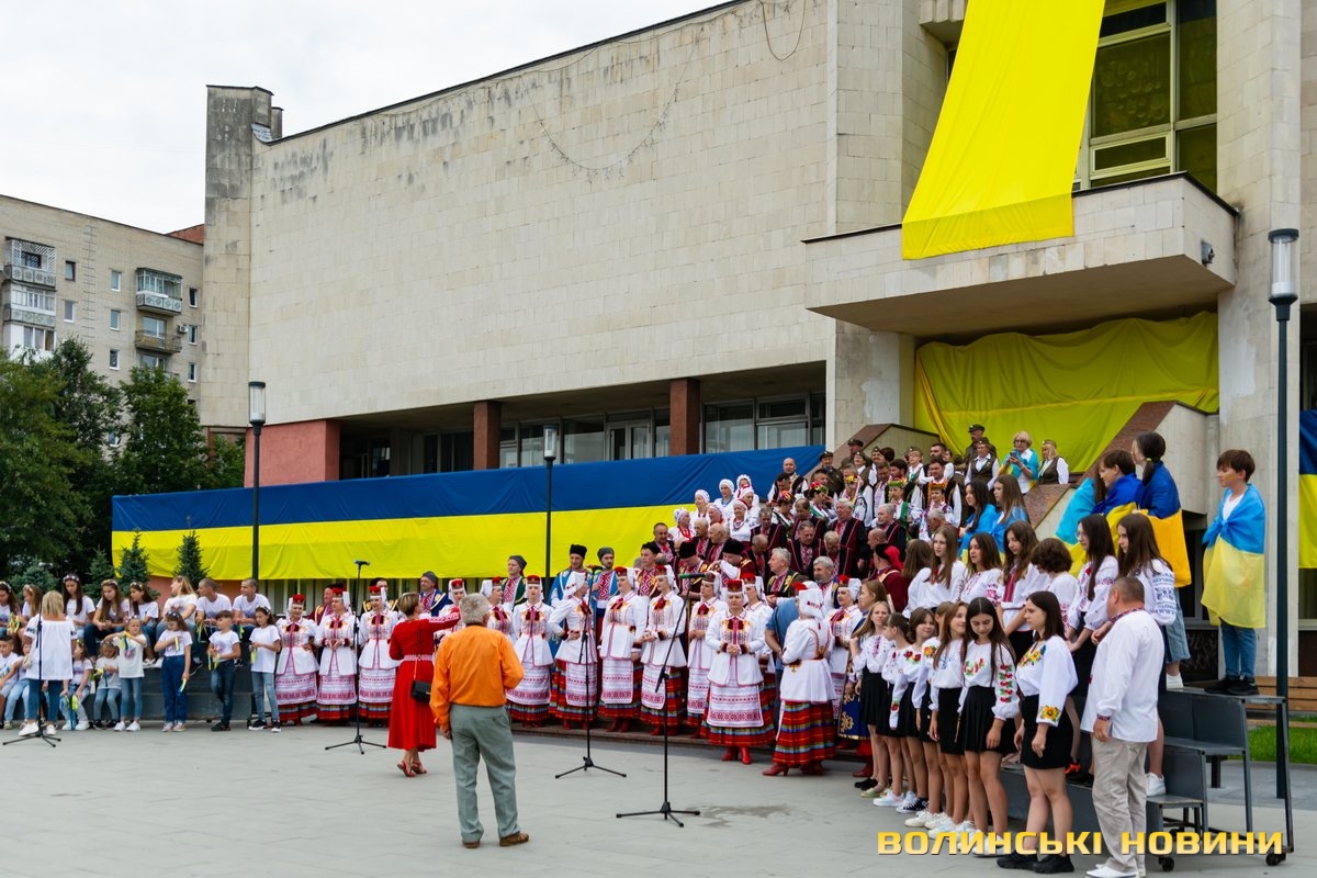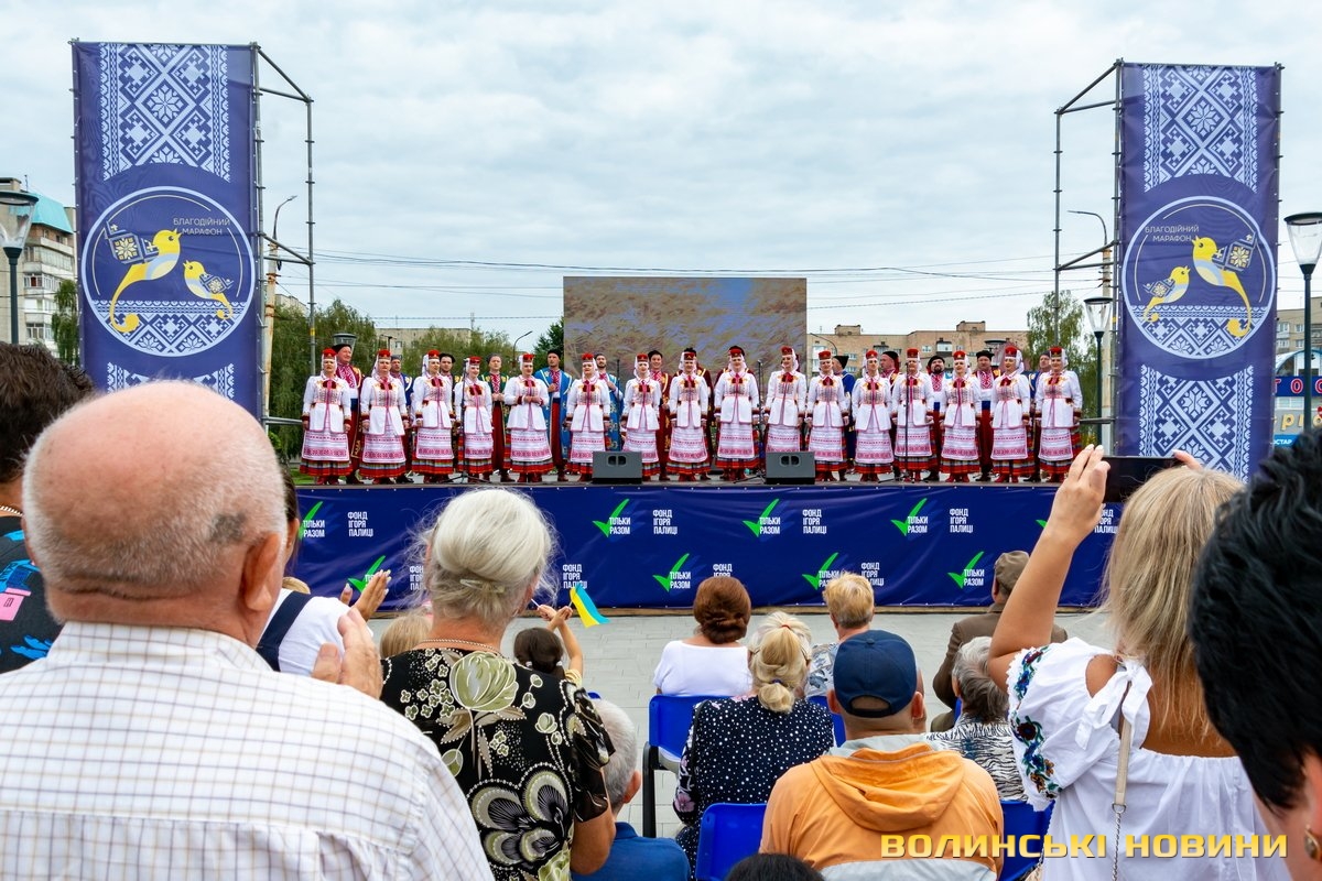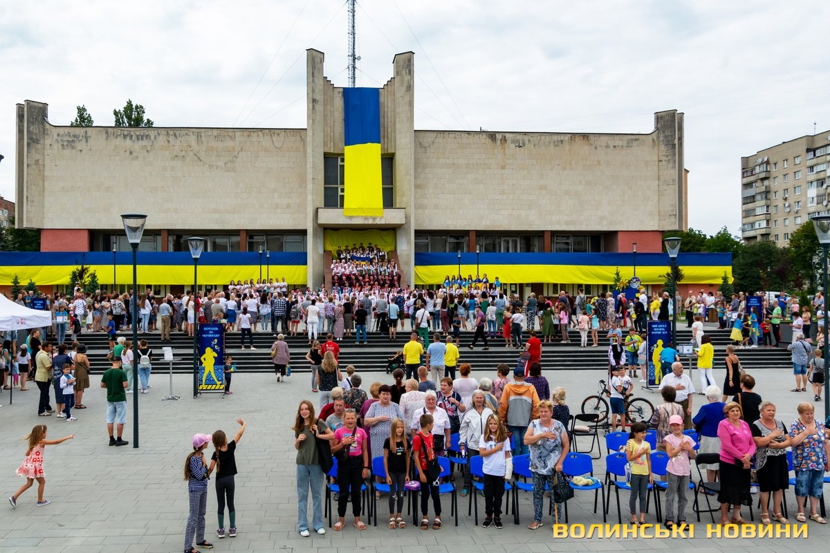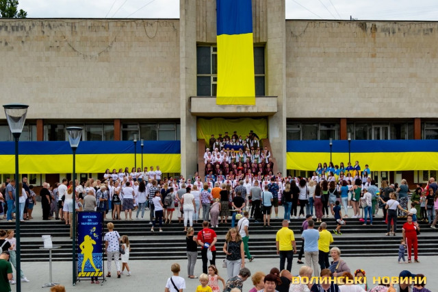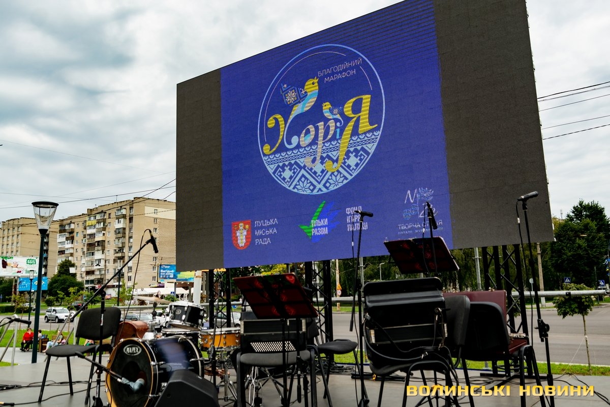 Усе це – частина унікального благодійного марафону «Хорія», метою якого є допомога нашим захисникам. Такий масштабний захід, який зібрав одночасно стільки чудових голосів, приурочено до Дня Незалежності України. Свято стало можливим завдяки підтримці Луцької міської ради, Фонду Ігоря Палиці «Тільки разом» та творчої студії Наталії Журавльової.«Сьогоднішній захід – символічний. Хорові колективи об’єдналися заради спільного виконання музичних творів. Об’єдналися так, як зараз об’єднуються усі українці, вся Україна. Заради незалежності, заради боротьби за нашу свободу, за нашу країну, за наших людей і за наше майбутнє. Фонд Ігоря Палиці «Тільки разом» охоче став співорганізатором заходу і ми сподіваємося, що це єднання залишиться в душах людей аж до перемоги. Будьмо єдині, будьмо сильні! Все буде Україна!» – поділилася враженнями голова правління Фонду Ігоря Палиці «Тільки разом» Катерина Шкльода.І це не просто слова – варто було на власні очі побачити, як площу перед РАЦСом, вбраним у кольори державного прапора, заповнили учасники колективів, аби осягнути масштаб заходу. І коли усі присутні спочатку виконали Гімн України, а після того – «Ой, у лузі червона калина» і «Волинь моя» – люди не могли стримати емоцій, на очі наверталися сльози...«У Луцьку День Незалежності завжди був особливим святом. Тож, незважаючи на тривожний час, Луцька міська рада за сприяння Фонду Ігоря Палиці «Тільки разом» організувала цей унікальний для міста захід. Ми подбали про укриття, всі заходи безпеки й бачимо, що ця площа зібрала велику кількість людей, адже у наших душах палає жага до свободи й незалежності. Тому цей захід і патріотичний, і покликаний піднести дух всього населення. І нам треба спільно, разом будувати перемогу в тилу – не менш активно, як воїни на передовій!» – підкреслила заступниця Луцького міського голови Ірина Чебелюк.Після спільного виконання музичних творів свято лише набрало обертів. Усі учасники марафону отримали пам’ятні дипломи. Затим творчі колективи продовжили виступи на сцені – яскраві вокальні та запальні хореографічні. Водночас не припиняли роботи ні благодійний ярмарок, ні острівці патріота, де за символічний внесок на користь наших воїнів кожен отримував прапорець.Дитячі емоції та враження – завжди щирі. Дарина, Саша та Христина не стримують захвату, перебиваючи одна одну, розповідають: на святі подобається все. Прийшли підтримати рідних, які виступають у колективах.І на наступні запитання діти відповідають майже одночасно: знають, що святкуємо День Незалежності, гімн співали разом з усіма, і найголовніше – впевнені, що Україна переможе!