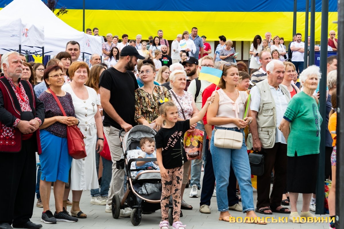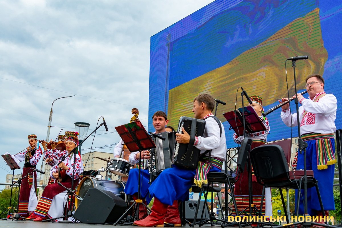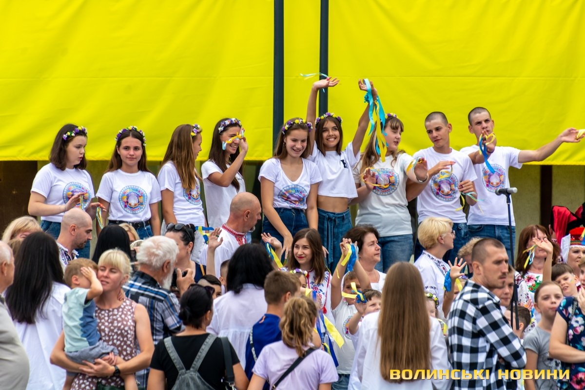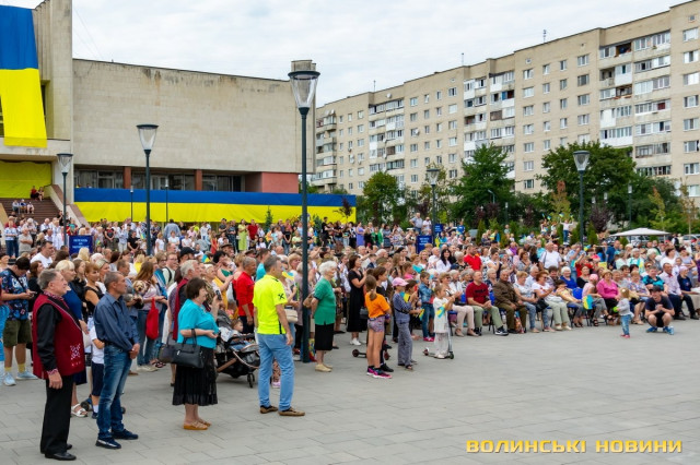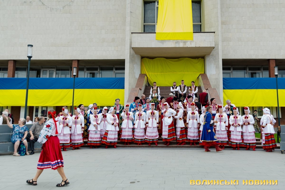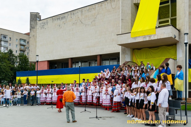 Усе це – частина унікального благодійного марафону «Хорія», метою якого є допомога нашим захисникам. Такий масштабний захід, який зібрав одночасно стільки чудових голосів, приурочено до Дня Незалежності України. Свято стало можливим завдяки підтримці Луцької міської ради, Фонду Ігоря Палиці «Тільки разом» та творчої студії Наталії Журавльової.«Сьогоднішній захід – символічний. Хорові колективи об’єдналися заради спільного виконання музичних творів. Об’єдналися так, як зараз об’єднуються усі українці, вся Україна. Заради незалежності, заради боротьби за нашу свободу, за нашу країну, за наших людей і за наше майбутнє. Фонд Ігоря Палиці «Тільки разом» охоче став співорганізатором заходу і ми сподіваємося, що це єднання залишиться в душах людей аж до перемоги. Будьмо єдині, будьмо сильні! Все буде Україна!» – поділилася враженнями голова правління Фонду Ігоря Палиці «Тільки разом» Катерина Шкльода.І це не просто слова – варто було на власні очі побачити, як площу перед РАЦСом, вбраним у кольори державного прапора, заповнили учасники колективів, аби осягнути масштаб заходу. І коли усі присутні спочатку виконали Гімн України, а після того – «Ой, у лузі червона калина» і «Волинь моя» – люди не могли стримати емоцій, на очі наверталися сльози...«У Луцьку День Незалежності завжди був особливим святом. Тож, незважаючи на тривожний час, Луцька міська рада за сприяння Фонду Ігоря Палиці «Тільки разом» організувала цей унікальний для міста захід. Ми подбали про укриття, всі заходи безпеки й бачимо, що ця площа зібрала велику кількість людей, адже у наших душах палає жага до свободи й незалежності. Тому цей захід і патріотичний, і покликаний піднести дух всього населення. І нам треба спільно, разом будувати перемогу в тилу – не менш активно, як воїни на передовій!» – підкреслила заступниця Луцького міського голови Ірина Чебелюк.Після спільного виконання музичних творів свято лише набрало обертів. Усі учасники марафону отримали пам’ятні дипломи. Затим творчі колективи продовжили виступи на сцені – яскраві вокальні та запальні хореографічні. Водночас не припиняли роботи ні благодійний ярмарок, ні острівці патріота, де за символічний внесок на користь наших воїнів кожен отримував прапорець.Дитячі емоції та враження – завжди щирі. Дарина, Саша та Христина не стримують захвату, перебиваючи одна одну, розповідають: на святі подобається все. Прийшли підтримати рідних, які виступають у колективах.І на наступні запитання діти відповідають майже одночасно: знають, що святкуємо День Незалежності, гімн співали разом з усіма, і найголовніше – впевнені, що Україна переможе!