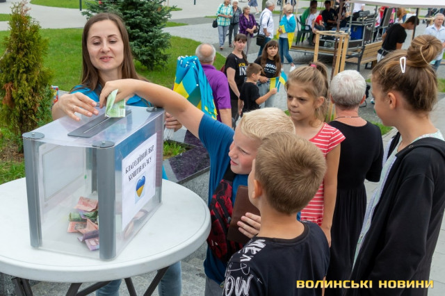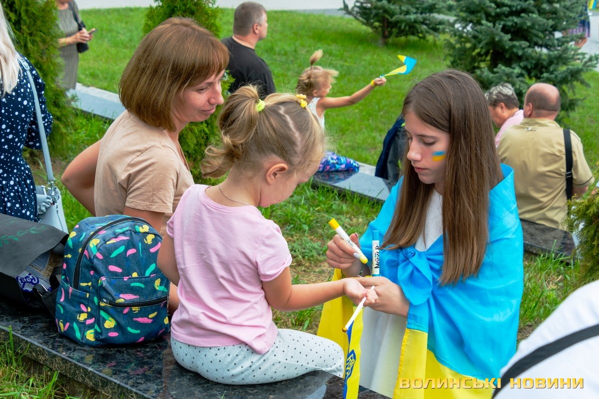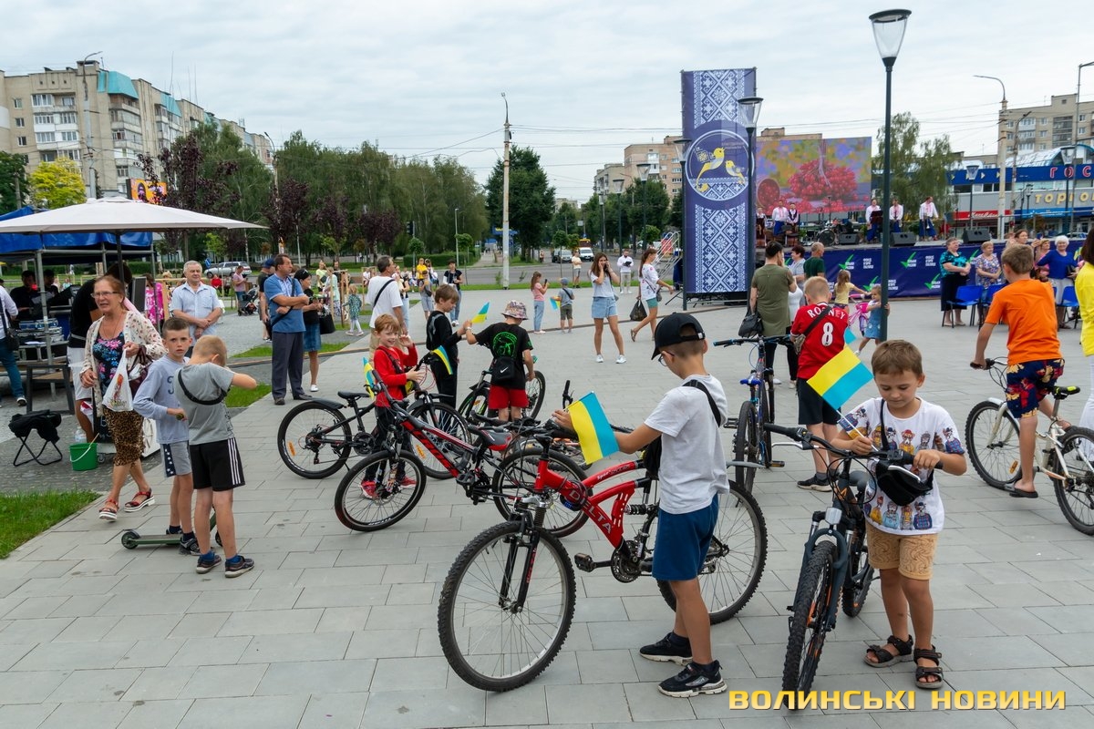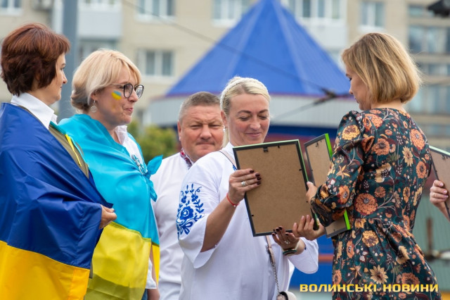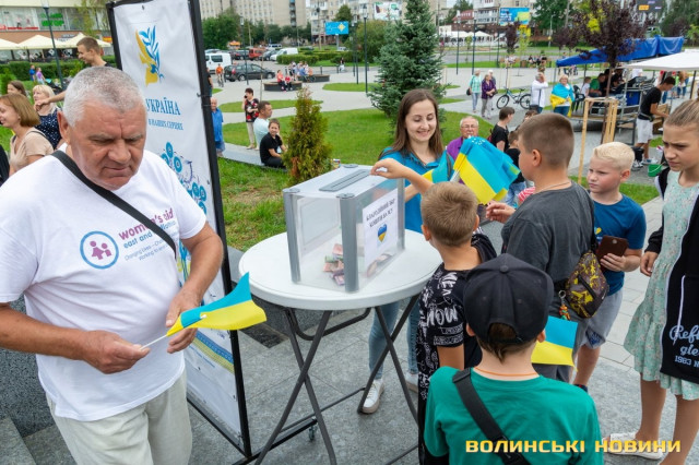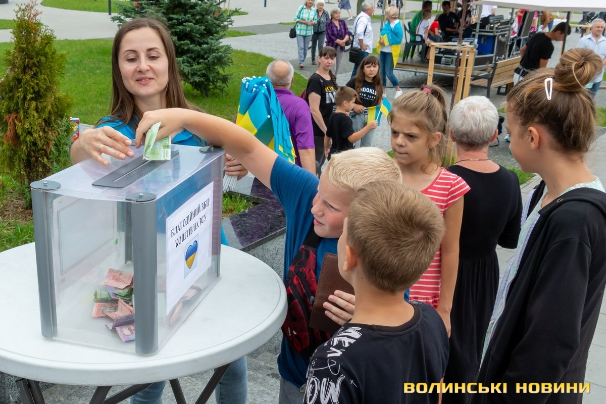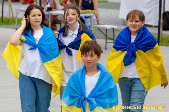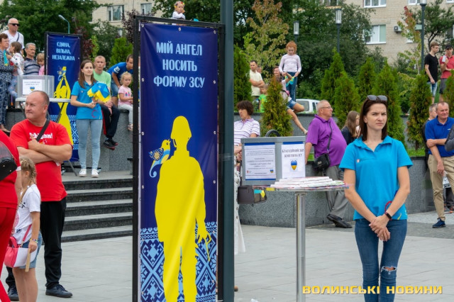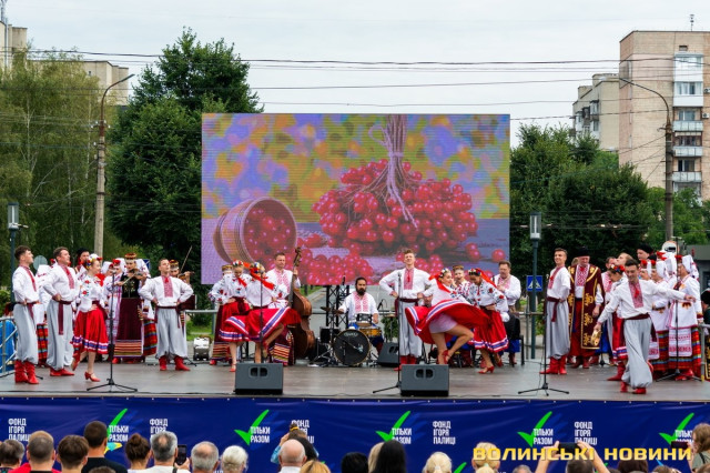 Усе це – частина унікального благодійного марафону «Хорія», метою якого є допомога нашим захисникам. Такий масштабний захід, який зібрав одночасно стільки чудових голосів, приурочено до Дня Незалежності України. Свято стало можливим завдяки підтримці Луцької міської ради, Фонду Ігоря Палиці «Тільки разом» та творчої студії Наталії Журавльової.«Сьогоднішній захід – символічний. Хорові колективи об’єдналися заради спільного виконання музичних творів. Об’єдналися так, як зараз об’єднуються усі українці, вся Україна. Заради незалежності, заради боротьби за нашу свободу, за нашу країну, за наших людей і за наше майбутнє. Фонд Ігоря Палиці «Тільки разом» охоче став співорганізатором заходу і ми сподіваємося, що це єднання залишиться в душах людей аж до перемоги. Будьмо єдині, будьмо сильні! Все буде Україна!» – поділилася враженнями голова правління Фонду Ігоря Палиці «Тільки разом» Катерина Шкльода.І це не просто слова – варто було на власні очі побачити, як площу перед РАЦСом, вбраним у кольори державного прапора, заповнили учасники колективів, аби осягнути масштаб заходу. І коли усі присутні спочатку виконали Гімн України, а після того – «Ой, у лузі червона калина» і «Волинь моя» – люди не могли стримати емоцій, на очі наверталися сльози...«У Луцьку День Незалежності завжди був особливим святом. Тож, незважаючи на тривожний час, Луцька міська рада за сприяння Фонду Ігоря Палиці «Тільки разом» організувала цей унікальний для міста захід. Ми подбали про укриття, всі заходи безпеки й бачимо, що ця площа зібрала велику кількість людей, адже у наших душах палає жага до свободи й незалежності. Тому цей захід і патріотичний, і покликаний піднести дух всього населення. І нам треба спільно, разом будувати перемогу в тилу – не менш активно, як воїни на передовій!» – підкреслила заступниця Луцького міського голови Ірина Чебелюк.Після спільного виконання музичних творів свято лише набрало обертів. Усі учасники марафону отримали пам’ятні дипломи. Затим творчі колективи продовжили виступи на сцені – яскраві вокальні та запальні хореографічні. Водночас не припиняли роботи ні благодійний ярмарок, ні острівці патріота, де за символічний внесок на користь наших воїнів кожен отримував прапорець.Дитячі емоції та враження – завжди щирі. Дарина, Саша та Христина не стримують захвату, перебиваючи одна одну, розповідають: на святі подобається все. Прийшли підтримати рідних, які виступають у колективах.І на наступні запитання діти відповідають майже одночасно: знають, що святкуємо День Незалежності, гімн співали разом з усіма, і найголовніше – впевнені, що Україна переможе!
