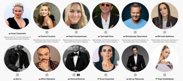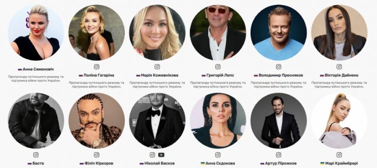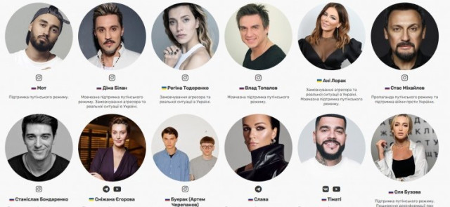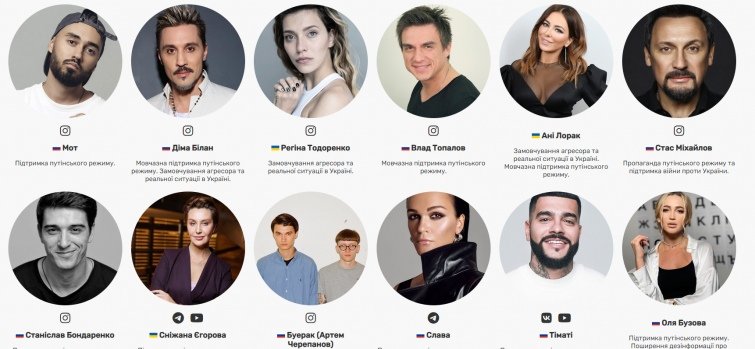 Запустили сайт з чорним списком зірок, які підтримують війну і Путіна