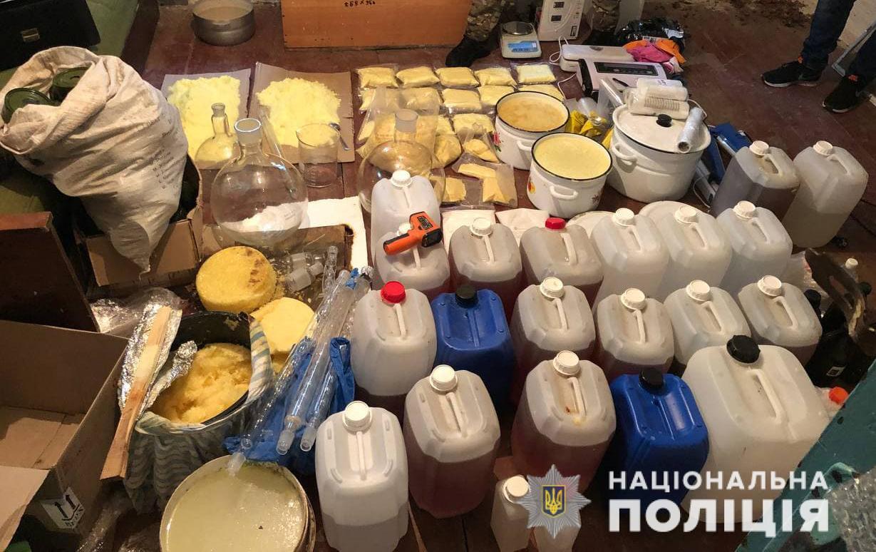 Поліцейські вилучили понад 30 кг хімічної речовини «фенілнітропропену», 160 л. прекурсорів (нітроетан, соляна та сірчана кислоти), амфетамін та кущі коноплі, вартістю понад 4 тис. грн.Організатору незаконної діяльності та трьом учасників групи слідчі повідомили про підозру за ч. 2 ст. 307 (Незаконне виробництво, виготовлення, придбання, зберігання, перевезення, пересилання чи збут наркотичних засобів, психотропних речовин або їх аналогів, вчинене повторно або за попередньою змовою групою осіб), ч. 3 ст. 311 (Незаконне виробництво, виготовлення, придбання, зберігання, перевезення чи пересилання прекурсорів, вчинені організованою групою або в особливо великих розмірах), ч. 2 ст. 313 (Викрадення, привласнення, вимагання обладнання, призначеного для виготовлення наркотичних засобів, психотропних речовин або їх аналогів, чи заволодіння ним шляхом шахрайства або зловживання службовим становищем та інші незаконні дії з таким обладнанням), ч. 2 ст. 317 (Організація або утримання місць для незаконного вживання, виробництва чи виготовлення наркотичних засобів, психотропних речовин або їх аналогів), ч. 1 ст. 306 ( Використання коштів, здобутих від незаконного обігу наркотичних засобів, психотропних речовин, їх аналогів, прекурсорів, отруйних чи сильнодіючих речовин або отруйних чи сильнодіючих лікарських засобів) Кримінального кодексу України.