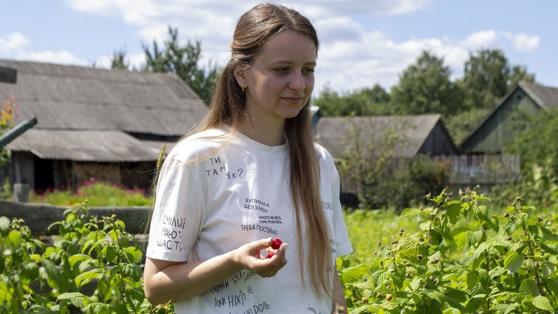 Волинянка Аліна Сахарук, родом із села Черемошне, дев’ять років проживає у Львові, але часто приїжджає до мами Світлани в гості, а влітку допомагає їй на полі збирати малину.