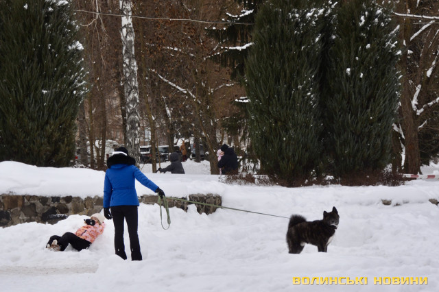 Попри морозну погоду, лучани, як і зазвичай, прийшли на вихідних до парку: хтось – на прогулянку, а хтось – навіть на пробіжку.