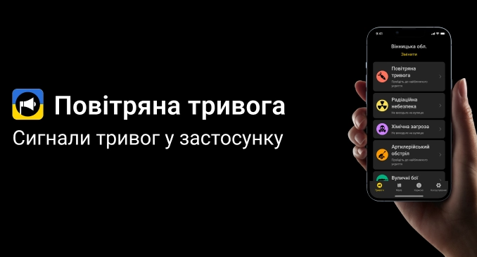Застосунок «Повітряна тривога» сповіщає про п’ять типів тривог, – розробники