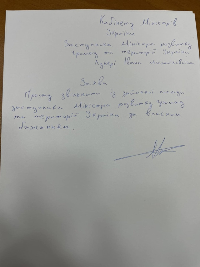 Заступник міністра розвитку громад та територій Лукеря написав заяву про звільнення