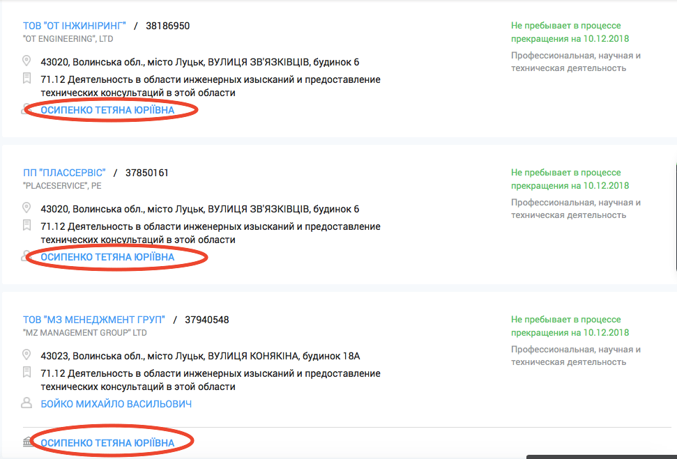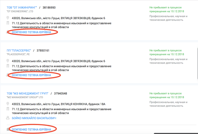 До слова, на його дружину Тетяну Осипенко зареєстровані і майно і бізнес. Згідно даних аналітичної системи YouControl, вона й донині є співвласником трьох підприємств, що займаються діяльністю у сфері інжинірингу, геології та геодезії, надають послуги технічного консультування. У двох з них вона є керівником.