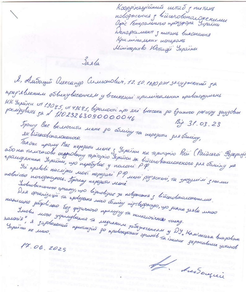 Відомо, що Олександр Абощий очікує, що його обміняють на когось з полонених українців, понад три місяці. В липні 2025 року він написав лист до Координаційного штабу з питань поводження з військовополоненими і попросив передати його у Росію або на тимчасово окуповану територію.