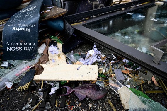 Поліція заявила, що було завдано «неймовірної шкоди морському середовищу» і двоє людей були поранені осколками скла.