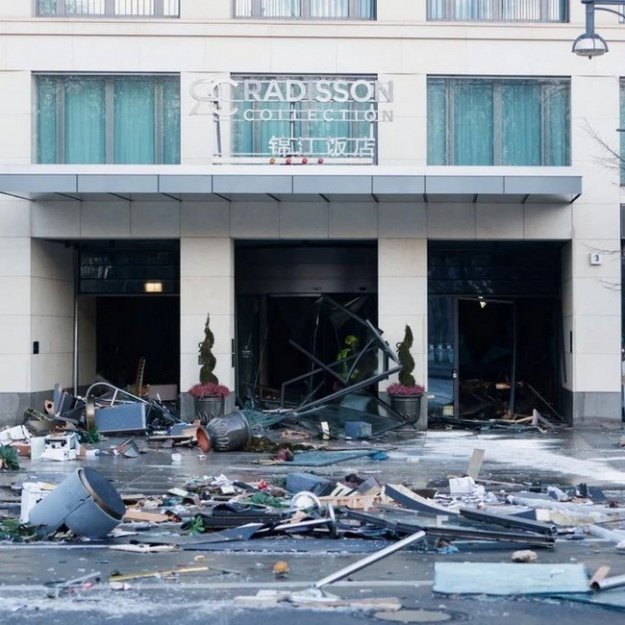 Зображення в соціальних мережах показали величезну кількість пошкоджень у фоє готелю.