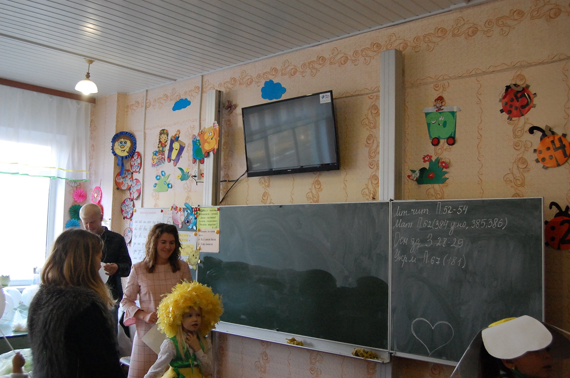 За словами мами другокласника, голови батьківського комітету школи Тетяни Макарчук, використання телевізора на уроках значно урізноманітнює процес навчання.