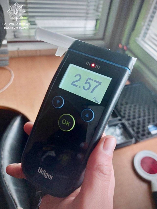 Під час спілкування з водіями поліцейські виявили у них ознаки алкогольного сп’яніння та запропонували пройти огляд за допомогою приладу Drager на місці події. Результат виявився позитивним: в одного з чоловіків — 2, 57 проміле, а в іншого — 1, 61 проміле.