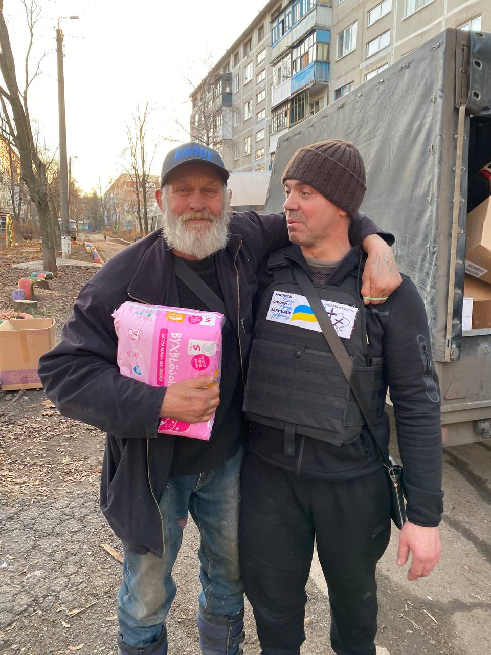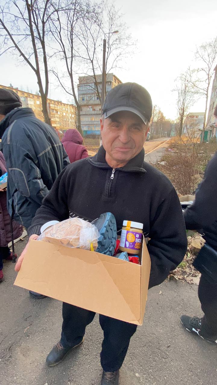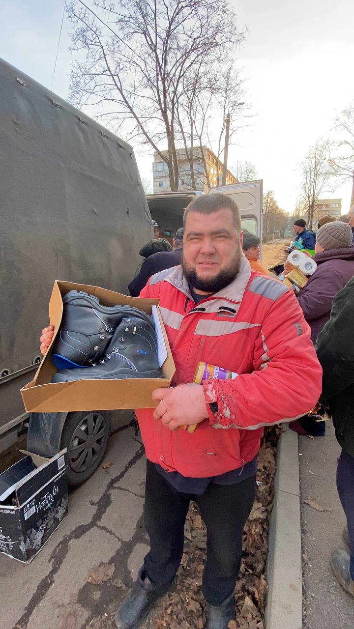 «Ми їхали до військових і цивільних у саме місто. Везли продуктові набори, солодощі, буржуйки, газові плити з балонами, теплий одяг, взуття, ковдри, засоби гігієни та інше – загалом близько трьох тонн допомоги. Вантаж вдалося зібрати завдяки партнерам і небайдужим. Наприклад, міськрада надала одноразові душі, а з церкви ми взяли багато теплих шерстяних ковдр. Пам’ятаю, як їздили в щойно звільнену Бучу, коли ще тіла лежали на вулицях, то найперше люди просили теплі речі та ковдри», – сказав він.