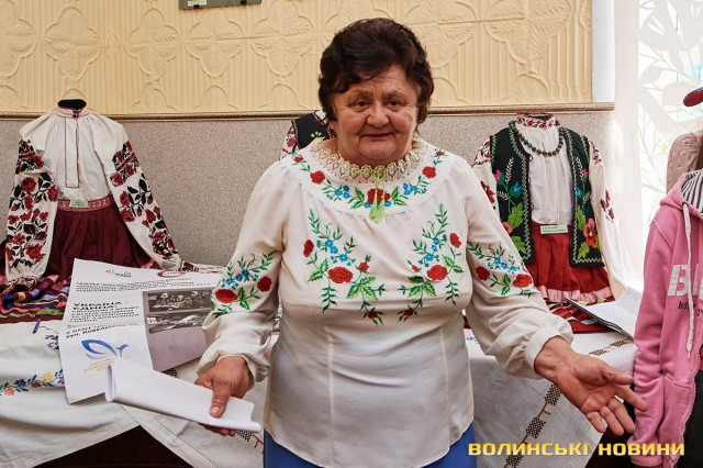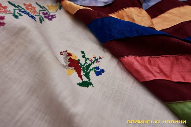 «Вишивання завжди було невід’ємною частиною нашої родини. А ще – пекти хліб. Пізніше ткали килими, полотно. Доводилося працювати… Я мала була, а бабуся до того всього підтягувала і привчала. Вона вишивала, а потім ще й шила одяг. А я дивилася за її роботою. Уже потім побачила, як відрізняються техніки пошиття у різних регіонах України, щось почала робити сама», – розповідає Марія Прус.Враженнями від виставки діляться і гості. Кажуть, що вражають не лише тонка робота, вишуканість, мальовничість і гармонія кольорів, а й усвідомлення того, наскільки це старовинні речі – кожна зі своєю історією.«Кожен регіон характеризувався своїми особливостями у оздобленні, матеріалах, які використовували, техніках його обробки. Важливо вивчати це, цікавитися, адже то – наше минуле, яке приходить у сьогодення і майбутнє. Молоді люди, які прийдуть до нас, також дізнаються багато цікавого. Ось, наприклад, ця сорочка. Їй більш як сто років. Є, мабуть, й давніші, але точніше визначити вік складно… Нині знову дуже популярні вишиванки, які люди носять не задумуючись. А кожен символ, кожен елемент на них щось означає. Коли подивишся на старовинні роботи, дізнаєшся про традиції їх оздоблення, починаєш «читати» сучасний одяг зовсім інакше», – підсумувала Алла Опейда.Відкриття виставки завершилося музичним подарунком. Гостей привітав дитячий фольклорний колектив «Вервечка», який презентує народне мистецтво Волині. Вбрані у автентичний одяг юні артисти неначе зійшли з історичних світлин. Це – наочний приклад функціонування історичної пам’яті, символ наступності поколінь, невмирущої актуальності традиційної культури. Експозиція буде діяти до 30 вересня, тож всіх охочих запрошують відвідати її. Вхід – вільний.