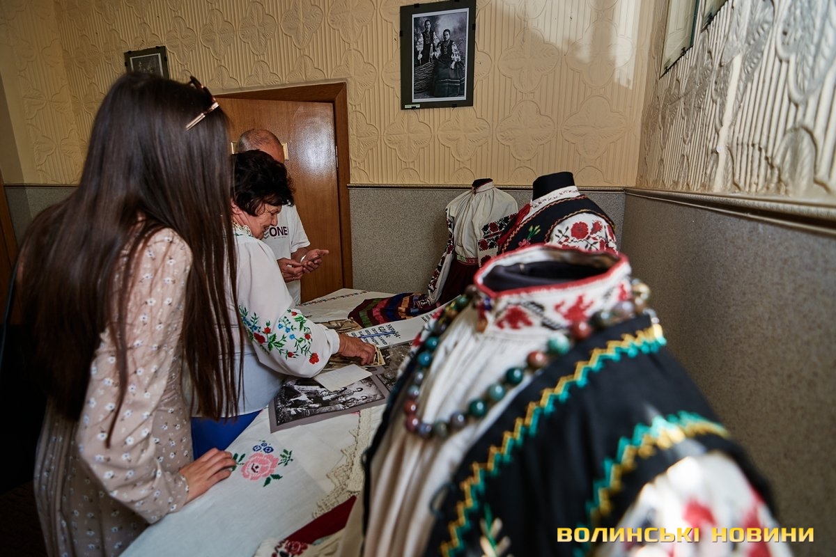 «Вишивання завжди було невід’ємною частиною нашої родини. А ще – пекти хліб. Пізніше ткали килими, полотно. Доводилося працювати… Я мала була, а бабуся до того всього підтягувала і привчала. Вона вишивала, а потім ще й шила одяг. А я дивилася за її роботою. Уже потім побачила, як відрізняються техніки пошиття у різних регіонах України, щось почала робити сама», – розповідає Марія Прус.Враженнями від виставки діляться і гості. Кажуть, що вражають не лише тонка робота, вишуканість, мальовничість і гармонія кольорів, а й усвідомлення того, наскільки це старовинні речі – кожна зі своєю історією.«Кожен регіон характеризувався своїми особливостями у оздобленні, матеріалах, які використовували, техніках його обробки. Важливо вивчати це, цікавитися, адже то – наше минуле, яке приходить у сьогодення і майбутнє. Молоді люди, які прийдуть до нас, також дізнаються багато цікавого. Ось, наприклад, ця сорочка. Їй більш як сто років. Є, мабуть, й давніші, але точніше визначити вік складно… Нині знову дуже популярні вишиванки, які люди носять не задумуючись. А кожен символ, кожен елемент на них щось означає. Коли подивишся на старовинні роботи, дізнаєшся про традиції їх оздоблення, починаєш «читати» сучасний одяг зовсім інакше», – підсумувала Алла Опейда.Відкриття виставки завершилося музичним подарунком. Гостей привітав дитячий фольклорний колектив «Вервечка», який презентує народне мистецтво Волині. Вбрані у автентичний одяг юні артисти неначе зійшли з історичних світлин. Це – наочний приклад функціонування історичної пам’яті, символ наступності поколінь, невмирущої актуальності традиційної культури. Експозиція буде діяти до 30 вересня, тож всіх охочих запрошують відвідати її. Вхід – вільний.