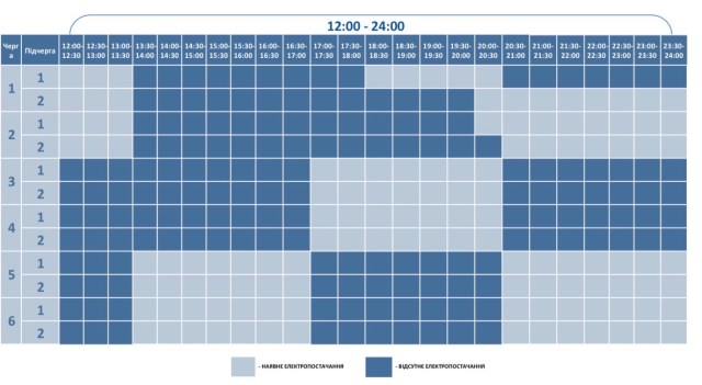 підчерга 2.2. – 00:00-03:00; 06:00-10:00; 13:30-20:30