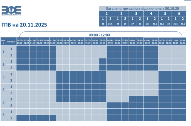 Завтра на Волині діятимуть графіки погодинних відключень електроенергії