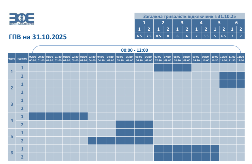 Також 31 жовтня на Волині будуть застосовувати обмеження потужності для промисловості та бізнесу – з 00:00 до 24:00.