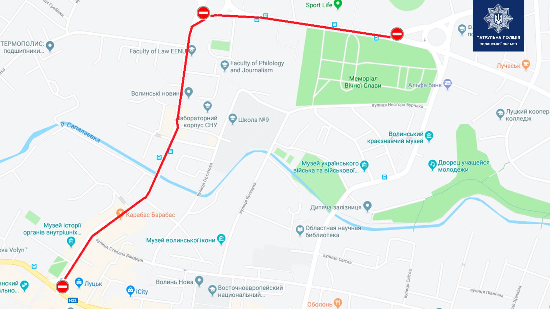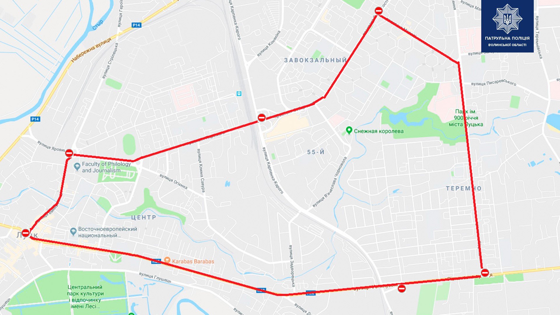 З метою забезпечення безпеки дорожнього руху й охорони громадського порядку під час проведення заходів до Дня Незалежності патрульна поліція Волині повідомила про перекриття руху транспорту, які відбудуться: