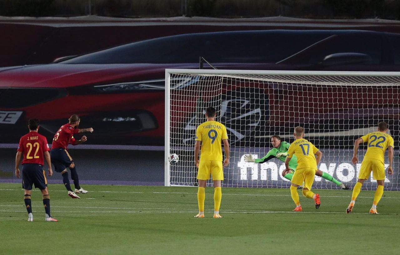 Збірна України, пропустивши тричі ще у першому таймі, в підсумку програла Іспанії на виїзді в елітному дивізіоні Ліги націй – 4:0.