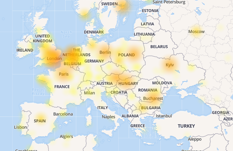 Як бачимо, у ресурсі Downdetector, в Європі спостерігається збій в роботі Facebook. Найбільше проблем зараз у користувачів з Британії, Німеччини, Франції, Польщі, Чехії, Іспанії, Італії, Угорщини.