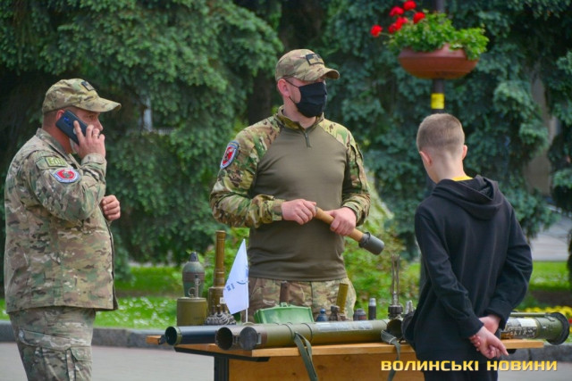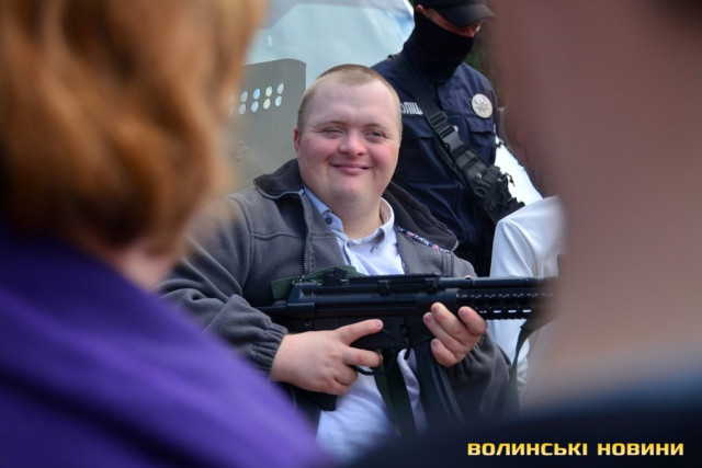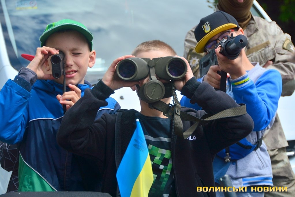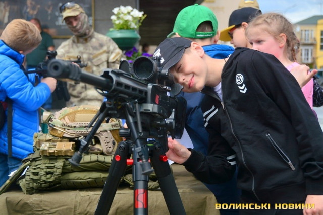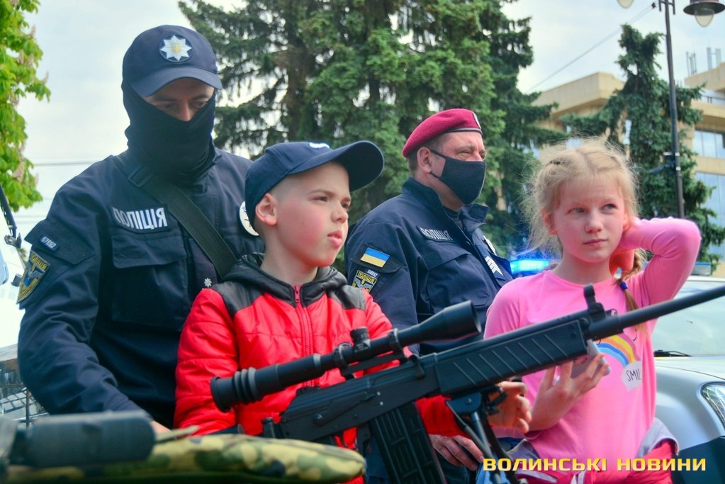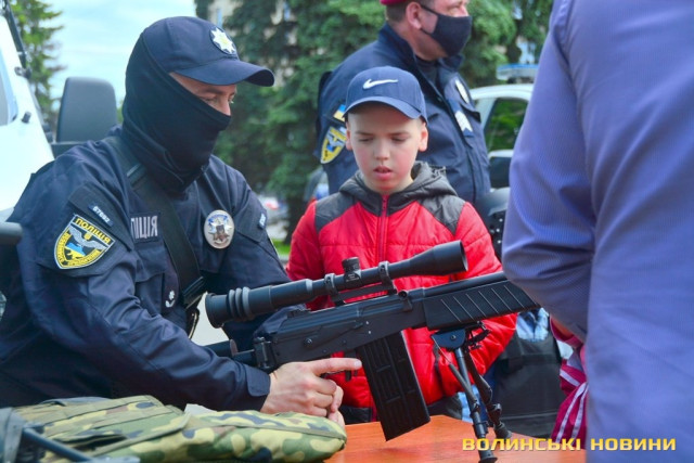 Чи не найголовнішими зірками заходу, який влаштували для діток в центрі міста, стали поліцейські вівчарка та лабрадор, які були не надто проти, щоб діти з ними погралися та зробили фото. Звичайно ж, хлопчиків цікавила зброя, якої було чимало, зокрема снайперські гвинтівки, гранатомети та автоматична. Кожен міг потримати зразки зброї в руках та подивитися у приціл.