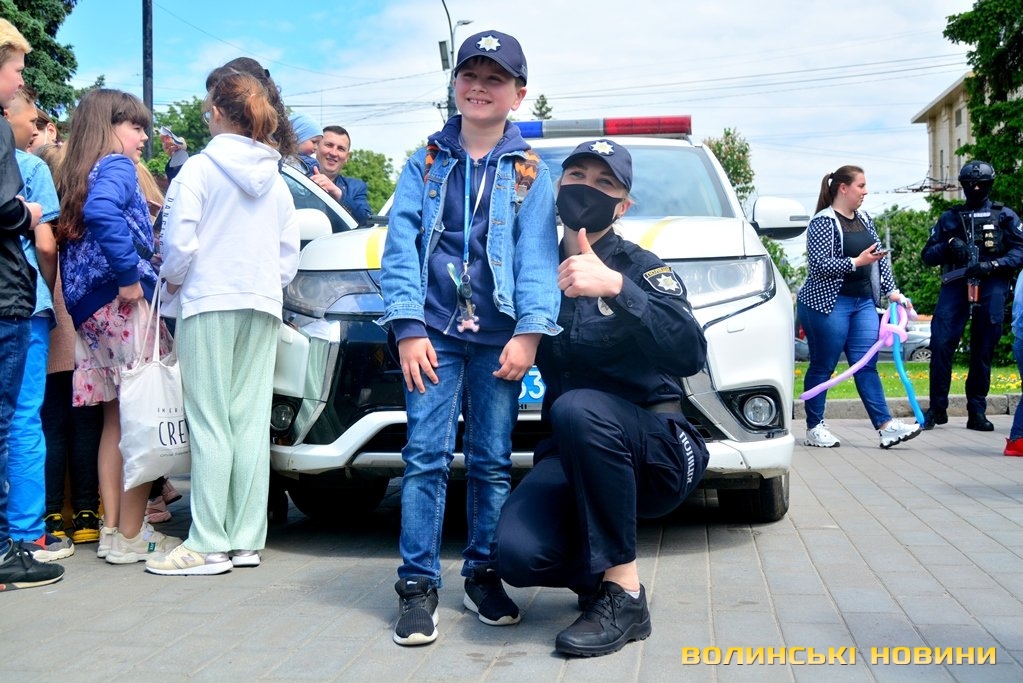 У центрі Луцька зібралися патрульні, ТОР, вибухотехніки, поліцейські кінологи та рятувальники. Здавалося б, на Театральному майдані якась надзвичайна подія, але ні, привід зібратися багатьом службам одночасно набагато приємніший – Міжнародний день захисту дітей.