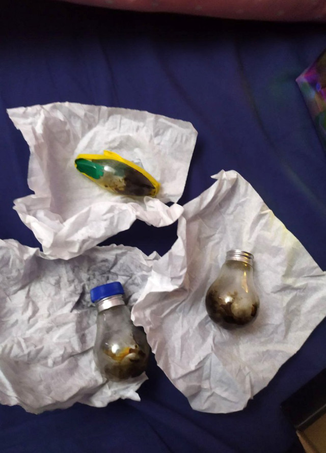 Під час проведення слідчих дій поліцейські виявили та вилучили речовину рослинного походження зеленого кольору зовні схожою на марихуану, пристрої для вживання наркотичних засобів із нашаруваннями білого та біло-синього кольорів, ваги, кредитні картки, мобільні телефони та інші речові докази.Виявлене направили до Волинського науково-дослідного експертно-криміналістичного центру МВС України для проведення відповідних експертиз.