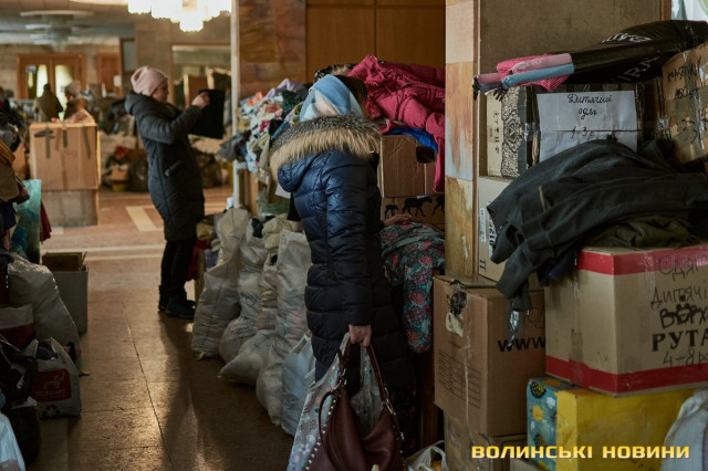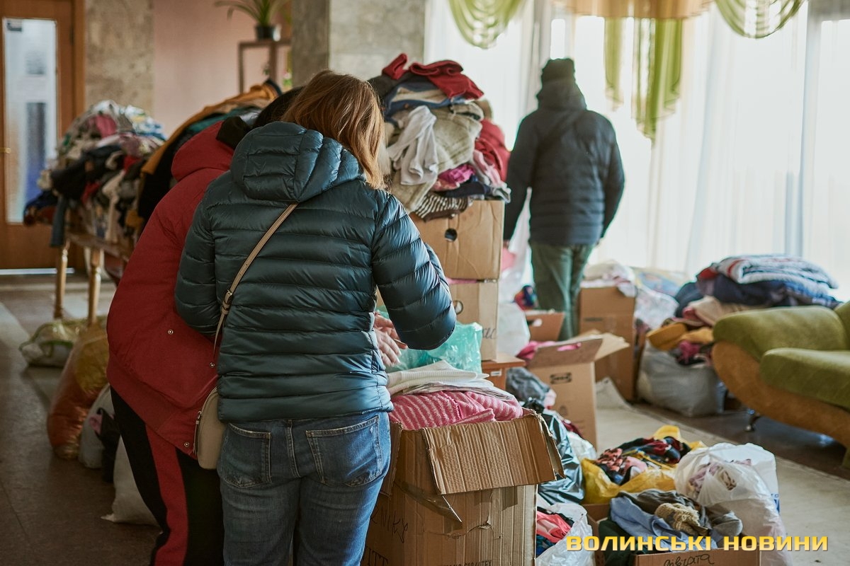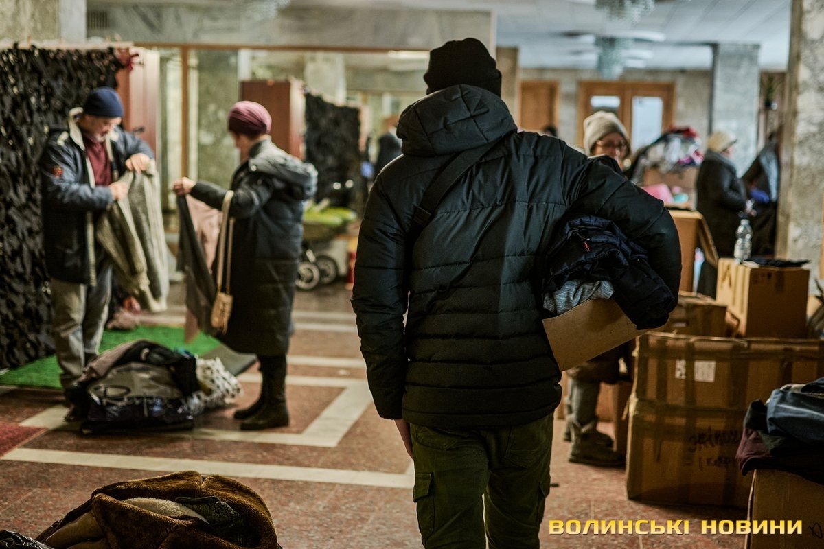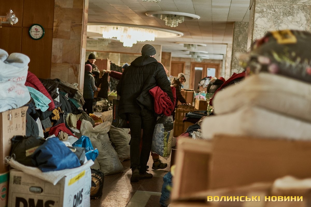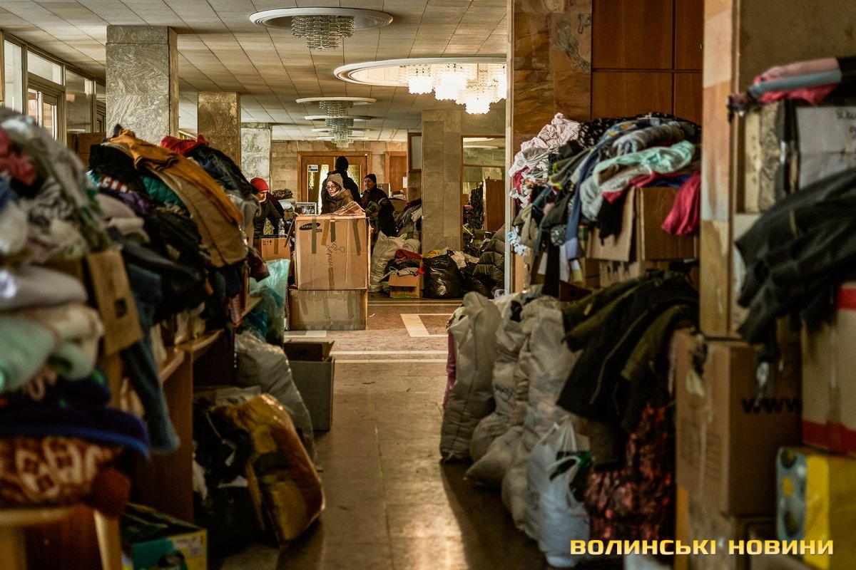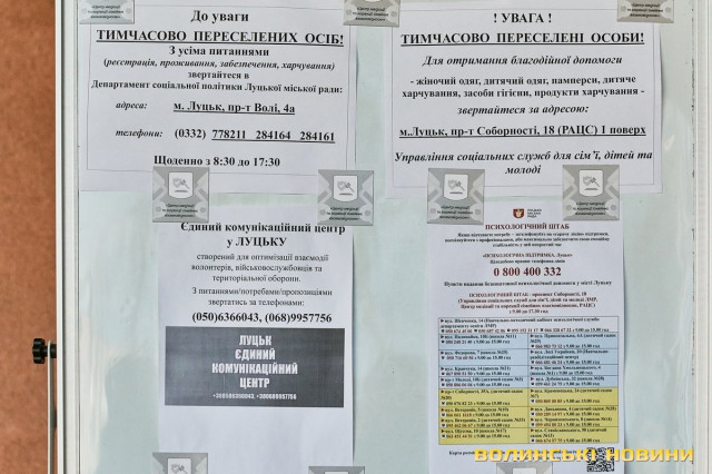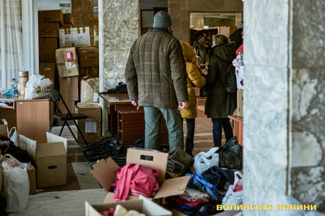 «Тут ми маємо банк одягу. Люди приходять, приносять допомогу, а ми, своєю чергою, роздаємо речі людям, які вскочили в автівки чи потяги у чому були. Також маємо пункт видачі продуктів харчування. За допомогою підприємців та благодійників, простих людей ми формуємо продуктові набори та сухпайки, які можна приготувати у тих помешканнях, де немає умов для повноцінного приготування їжі. Заразом маємо пункт допомоги для немовлят: памперси, дитяче харчування, візочки, ліжечка, манежі – це також нам жертвують люди і завдяки цьому маємо змогу допомагати», – розповіла Ліна Галан.Вона зазначила, що психологи радять: кожна людина під час війни має відчувати свою причетність до роботи на шляху до перемоги. Саме тому в Центрі допомоги вимушеним переселенцм розгорнули штаб, куди запрошують волонтерів плести маскувальні сітки. Для цього облаштували спеціальні стійки в обрядових залах.«Тому, якщо є бажання долучитися, можна приходити до нас. Також плетіння сіток гарно розгорнули у школах міста. Сьогодні військові потребують цих сіток, тож потрібно, аби їх було у наявності більше. Окрім цього, всі охочі можуть приходити до нас і допомагати сортувати одяг, допомагати людям його вибирати, бо здебільшого біженці приїжджають у паніці, у них розконцентрована увага. Тому важливою є підтримка кожного небайдужого мешканця громади. Дуже потребуємо продуктів харчування, тому що запаси швидко закінчуються, адже одна з найважливіших базових потреб людей – у харчуванні та одязі. Утім є необхідність у постелі, рушниках, посуді. І якщо наш банк одягу досить наповнений, то усі харчі, що привозять, за день роздаємо. Рідко хто із гарячих точок має можливість взяти із собою речі, які були важливими у мирному житті», – каже співрозмовниця.Окрім цього, в Центрі організували роботу психологічного штабу, об’єднали навколо себе провідних психологів Луцька, які мали приватну практику, є викладачами ВНУ тощо. Тож станом на сьогодні у цьому штабі працюють понад пів сотні топових психологів міста.