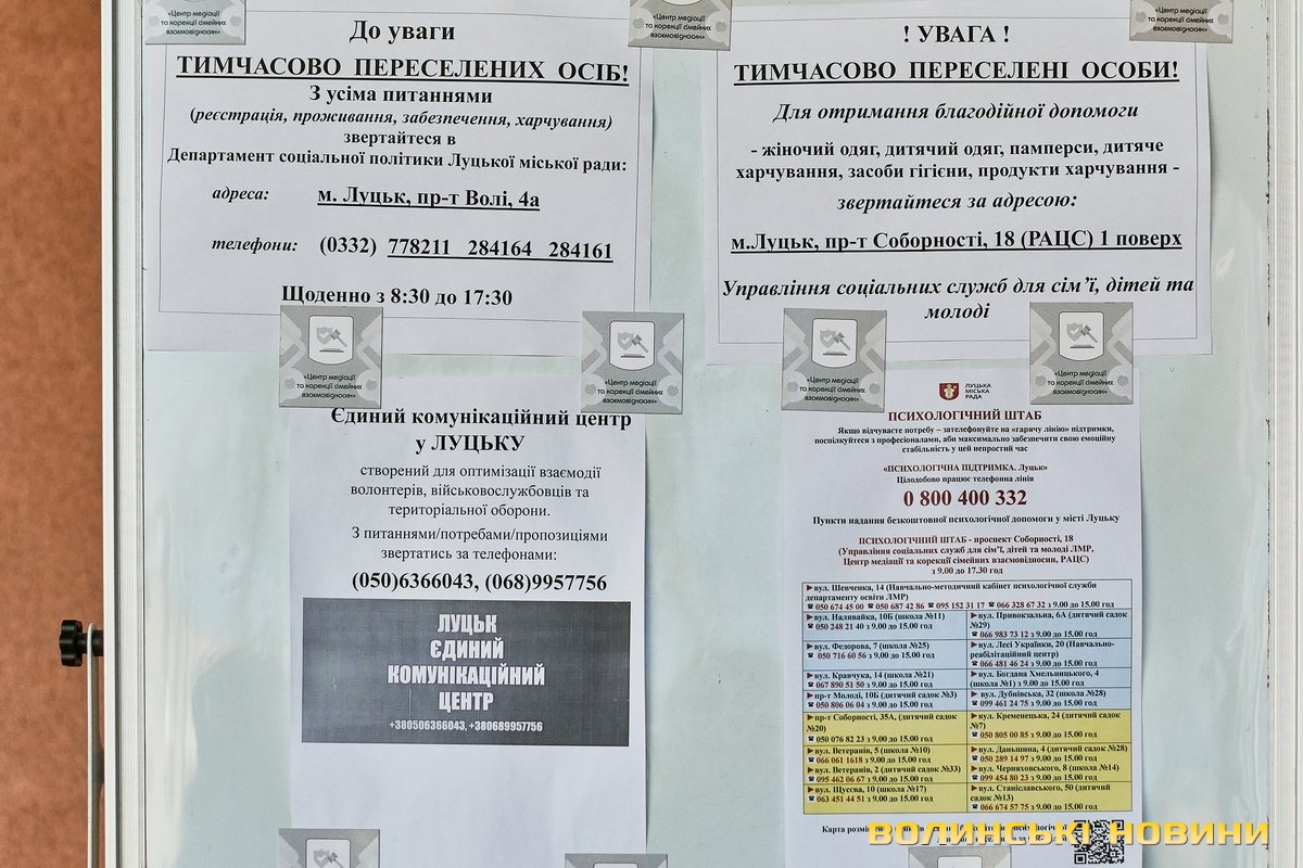 Як пояснила начальниця управління соціальних служб для сім'ї, дітей та молоді Луцької міської ради Ліна Галан, штаб психологічної допомоги при Центрі допомоги вимушеним переселенцям працює у трьох напрямках.