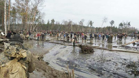 Як наразі виглядає процес видобутку бурштину?Спершу в лісі, під яким залягає бурштин, робиться просіка. Дерева викорчовують, розчищають невелику смугу землі, в якій екскаватором копають канал від найближчої річки.