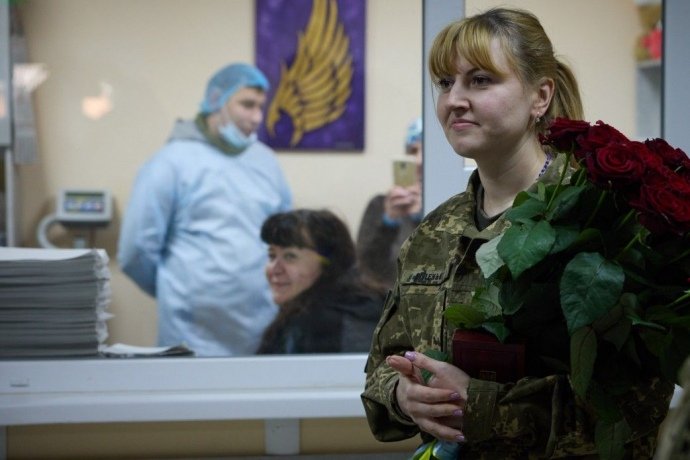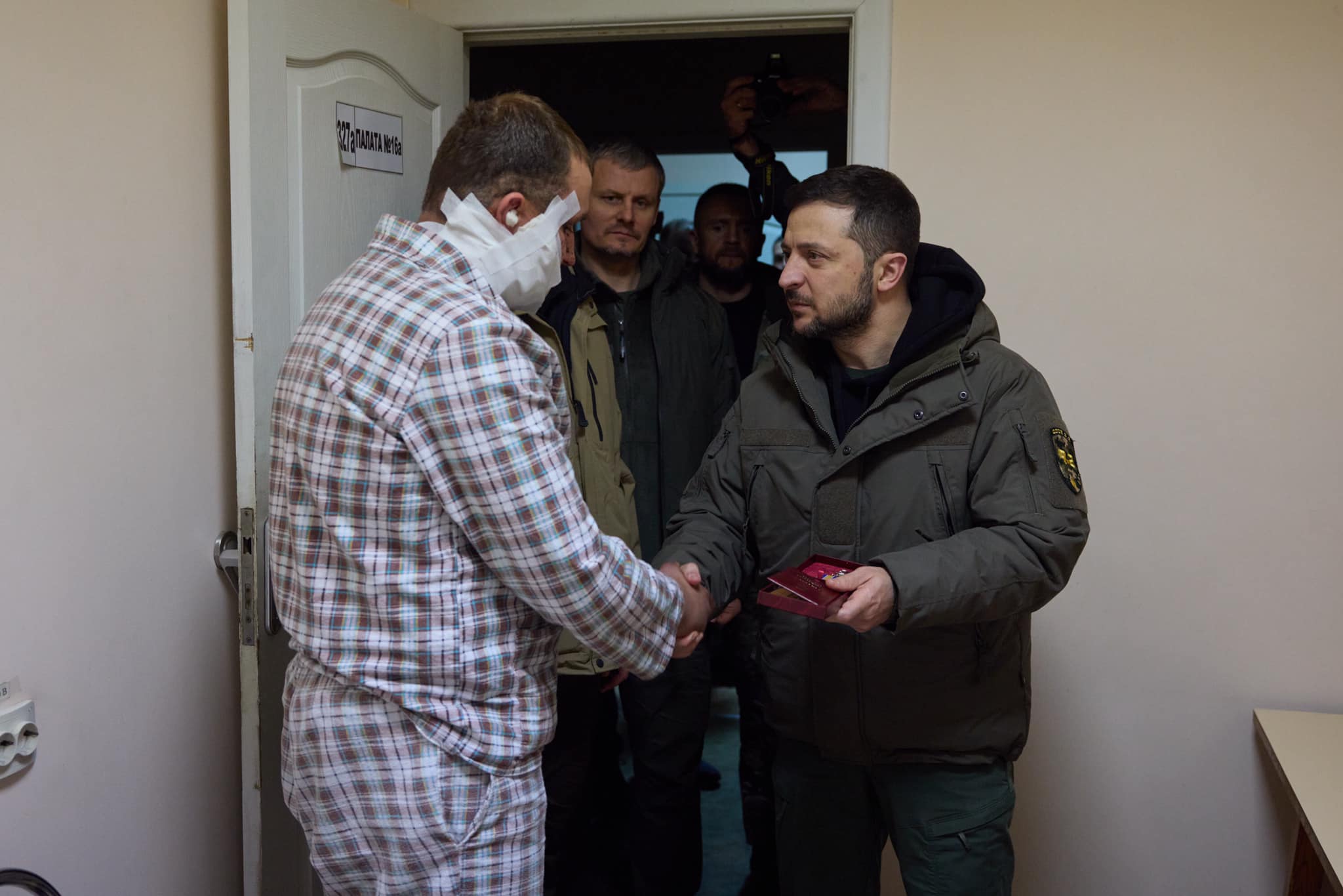 «Велика честь бути сьогодні з вами. Дякую вам за героїзм, із яким ви захищаєте нашу державу, її незалежність і територіальну цілісність, свободу й життя наших людей. Бажаю вам якнайшвидшого одужання», – додав Зеленський.