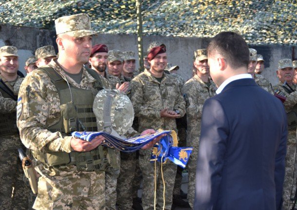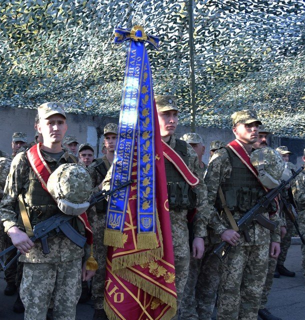 Твердою рукою тримаючи зброю, з честю та гідністю, як велить серце воїна та вірність військовий присязі, під синьо-жовтими державними стягами, з вірою в Україну, пам’ятаючи та примножуючи військову велич князя Романа Великого та під покровом Матері Божої, ми будемо захищати рідну землю!» – пишуть у мережі.Як повідомлялося раніше, під часробочої поїздки в Донецькій області Володимир Зеленський вручив державні нагороди українським бійцям.