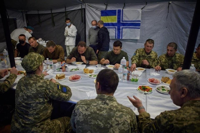 Фото застілля у військовому наметі опублікувала пресслужба глави держави, пише Страна.