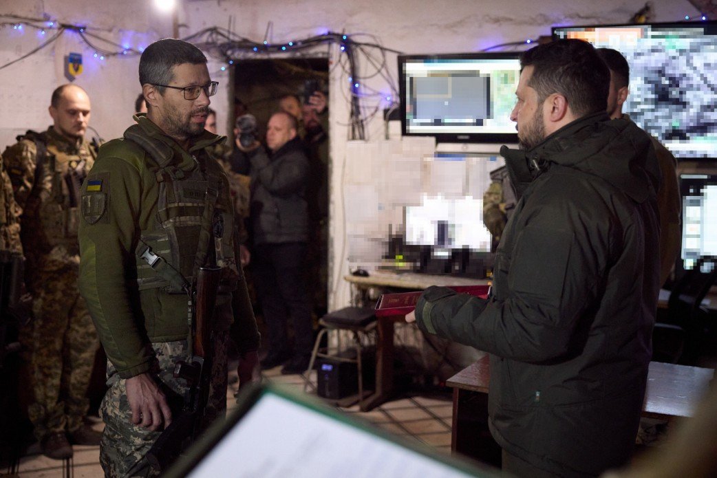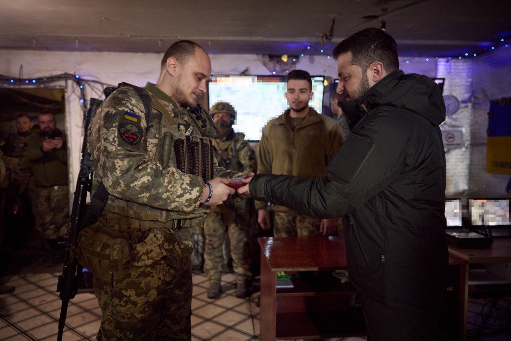 «Маю честь сьогодні з нашою командою бути тут, у вас в Авдіївці, подякувати вам за службу й нагородити. Ви – сильні люди. Завдяки вам у нас є Україна, наша земля, наші рідні та близькі. Хочу привітати вас із Різдвом, з Новим роком, подякувати від всього народу України за цей рік, який ви вистояли. І вся країна вистояла завдяки вам і завдяки таким, як ви», – зауважив Президент.