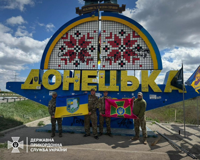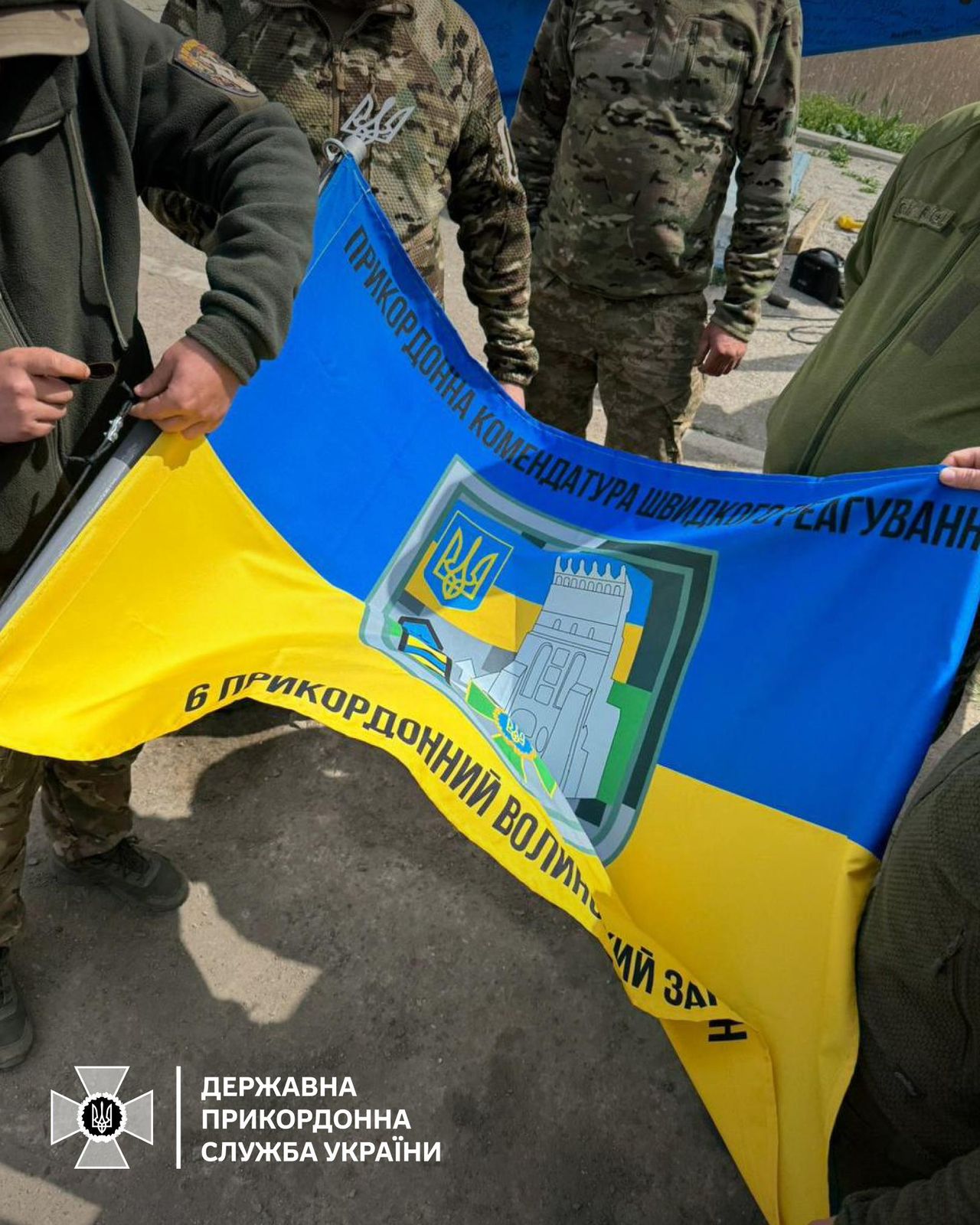 Бійці Волинського прикордонного загону мужньо протистоять ворогу та нищать російських окупантів на одному з найгарячіших напрямків фронту. Сьогодні воїни прикордонної комендатури швидкого реагування (ПКШР) з Волині у знак солідарності з усіма підрозділами Сил оборони України, котрі пліч-о-пліч виборюють незалежність нашої України, встановили знамена Держприкордонслужби та свого підрозділу біля відомої стели на Донеччині.