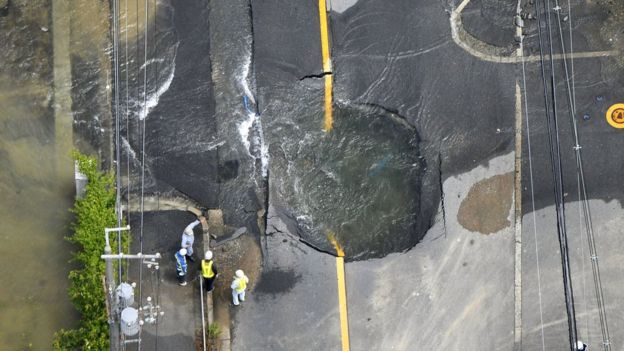 Через землетрус сталася пожежа у деяких будинках, також розколовся асфальт на дорогах та тріснули водопровідні труби.