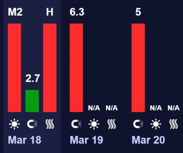 Але й це ще не все. Експерти повідомляють, що вранці 18 березня на Сонці стався спалах середньої за силою. Однак, з огляду на місце його походження, необхідні додаткові розрахунки. Як повідомляється, існує висока ймовірність, що цей спалах вдарить по Землі 20-21 березня.Магнітна буря рівня G3 – чим небезпечна і як захиститися